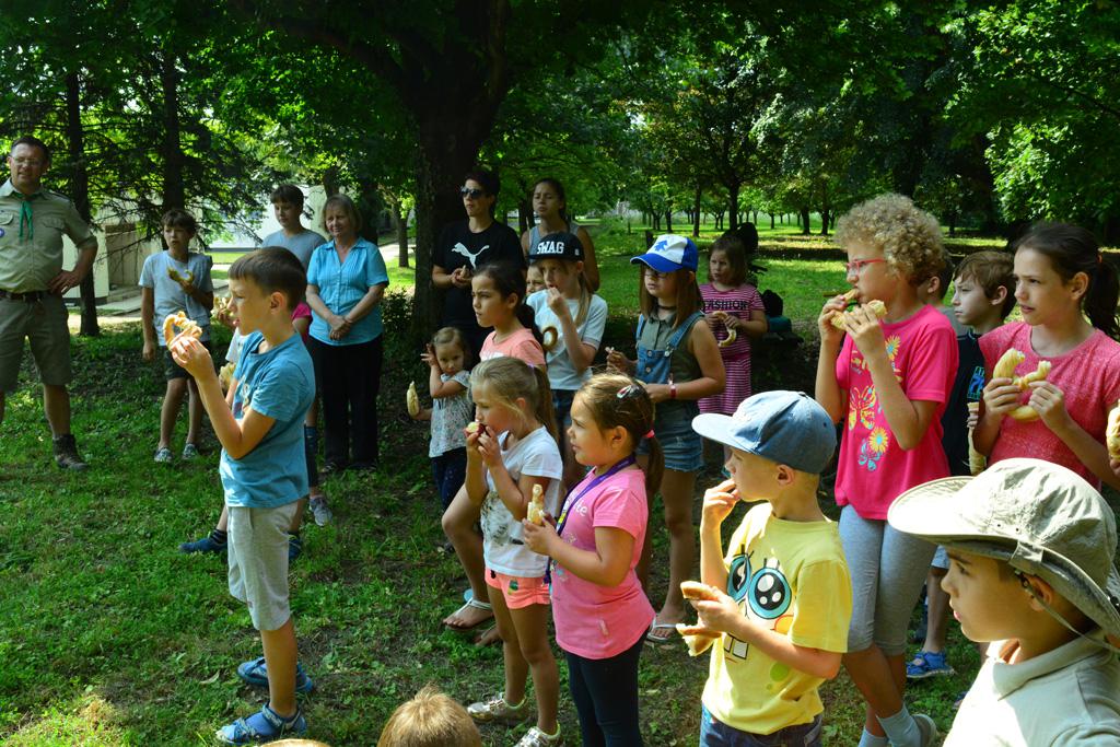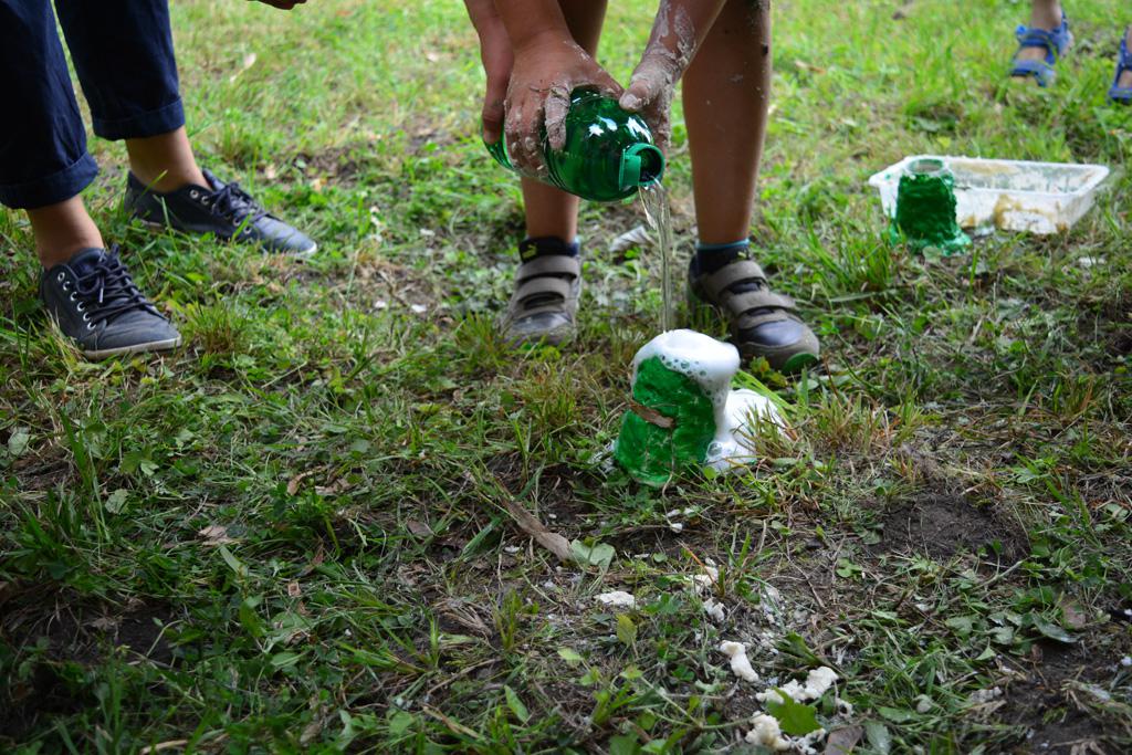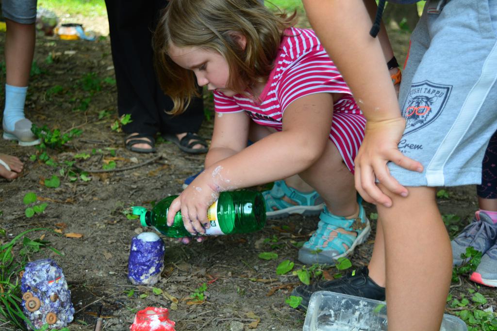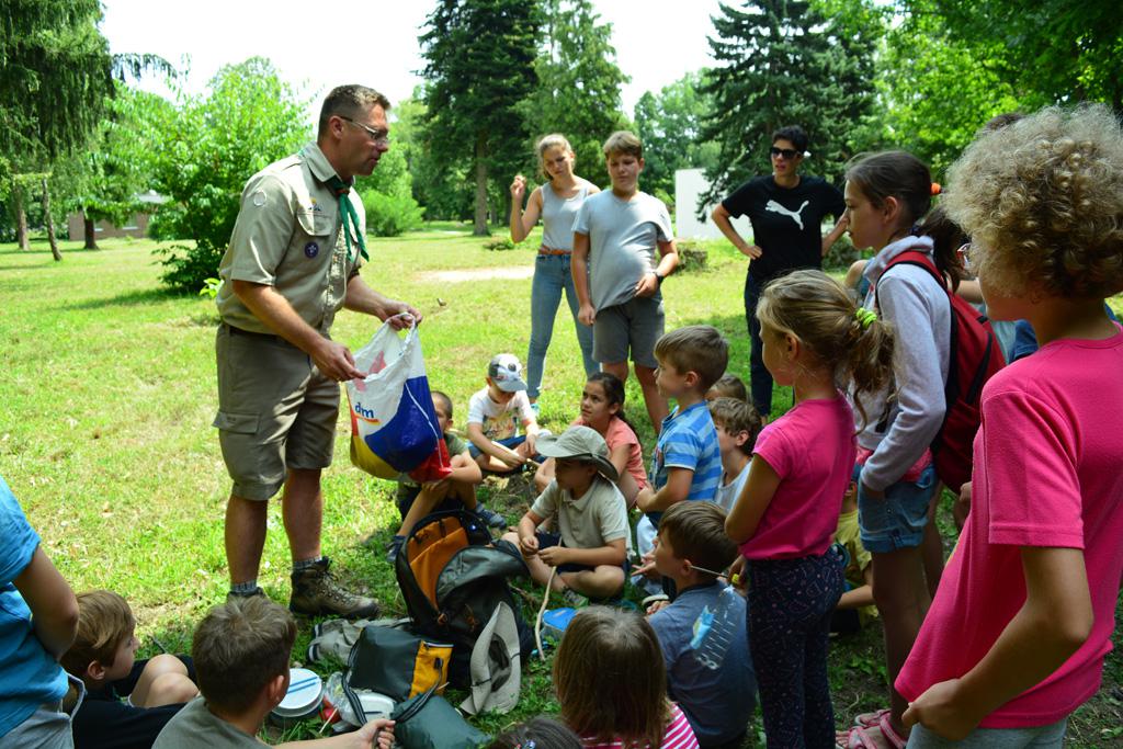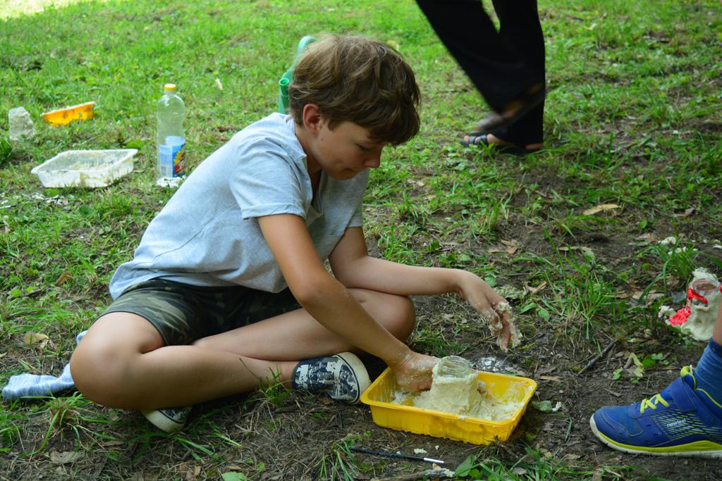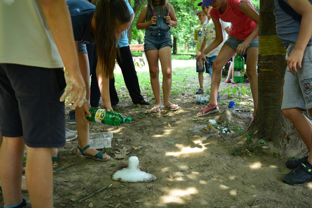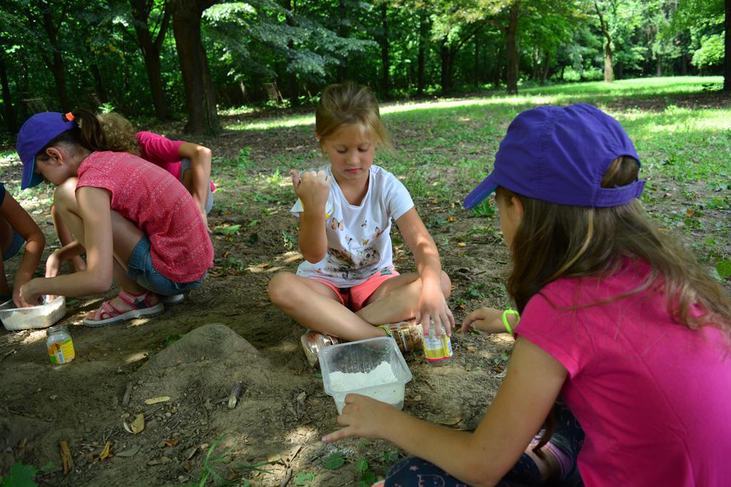 Megnézhettük mit is rejt egy cserkésztáska, s hogyan tájékozódhatunk az erdő közepén. Délután vulkánokat készítettünk, amik ki is törtek, majd a gyógynövénykertben sétáltunk, ültettünk, s fűszernövényeket kóstoltunk.