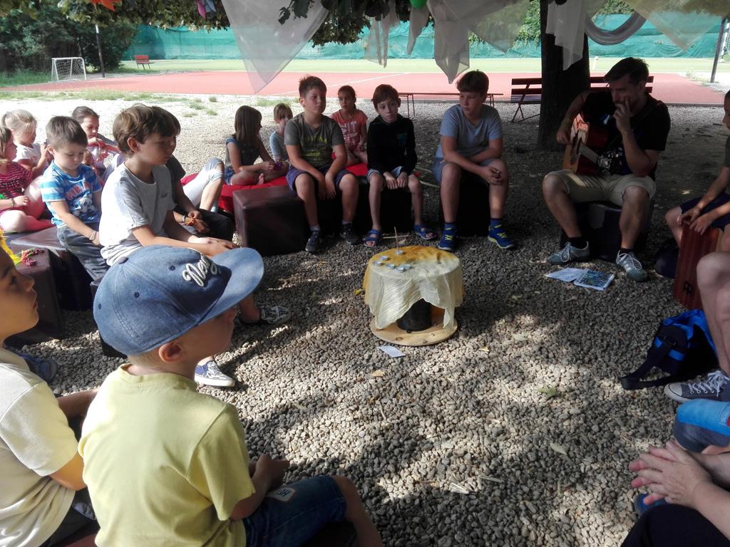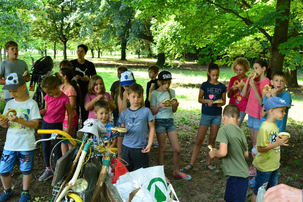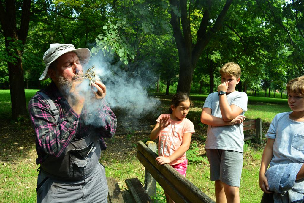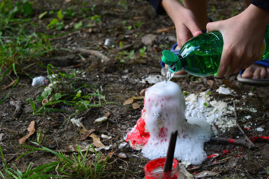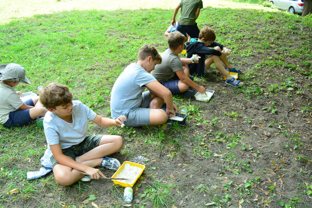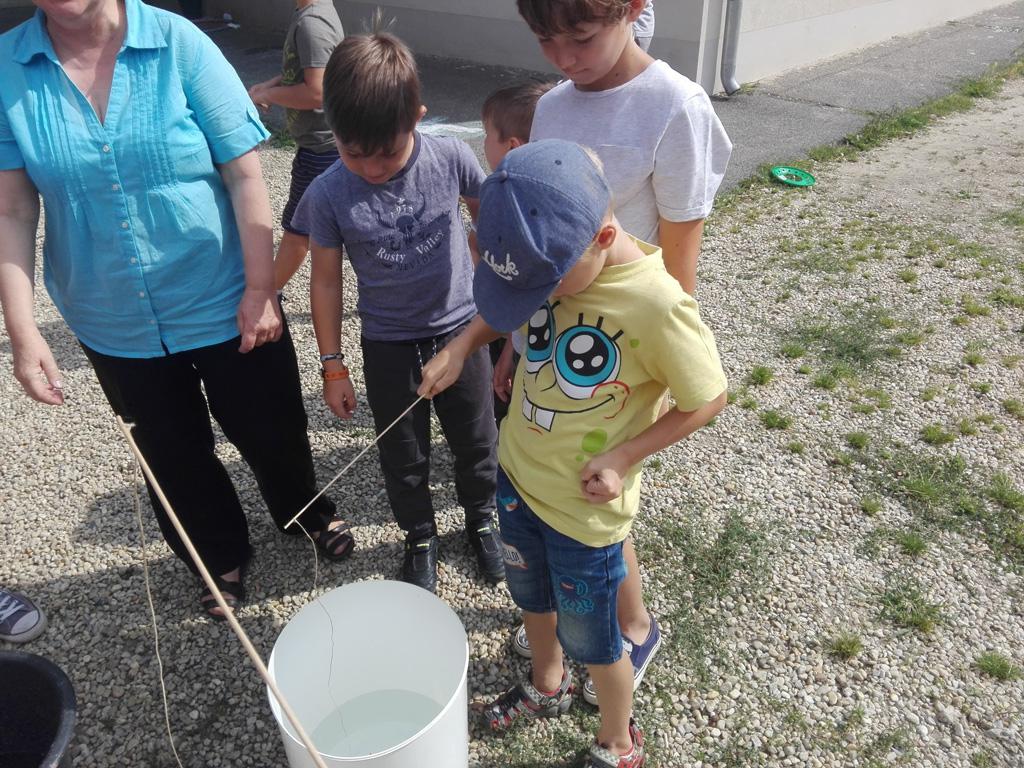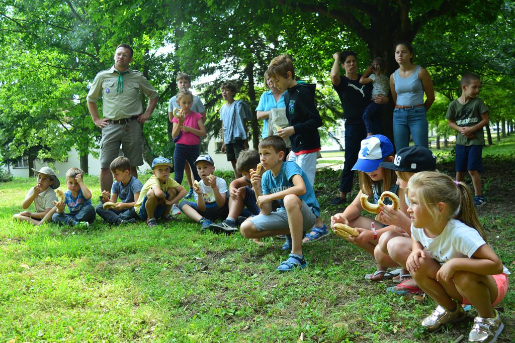Megnézhettük mit is rejt egy cserkésztáska, s hogyan tájékozódhatunk az erdő közepén. Délután vulkánokat készítettünk, amik ki is törtek, majd a gyógynövénykertben sétáltunk, ültettünk, s fűszernövényeket kóstoltunk.