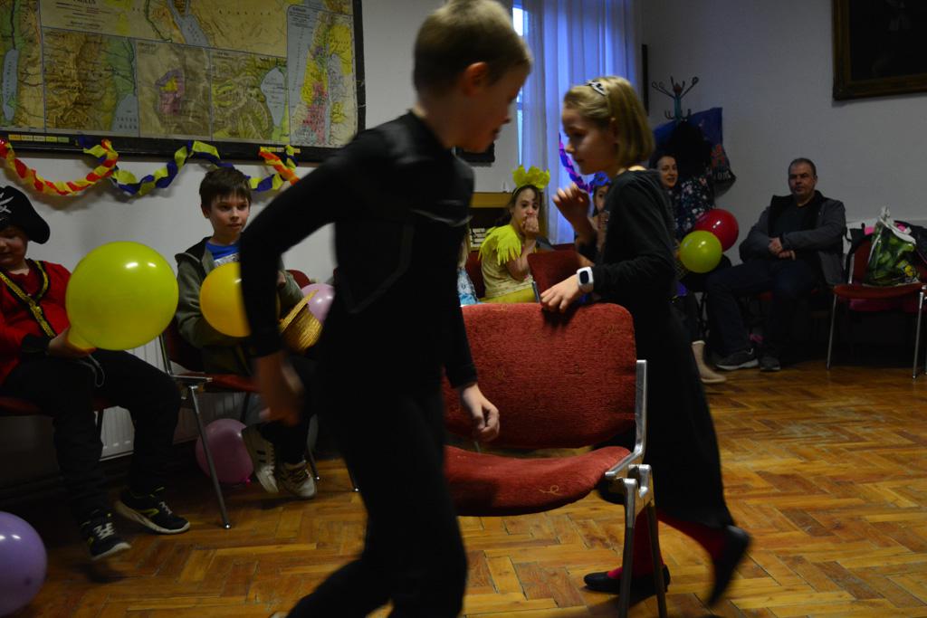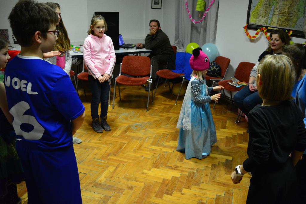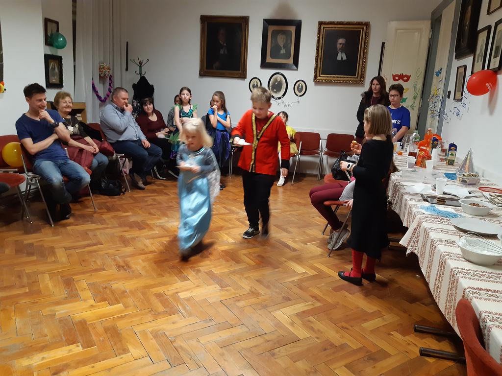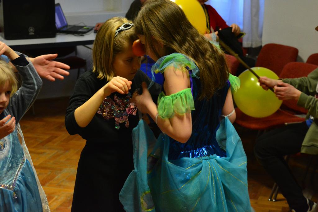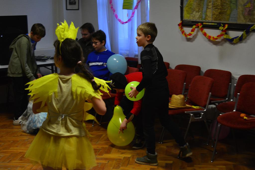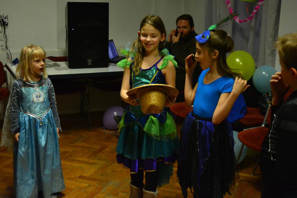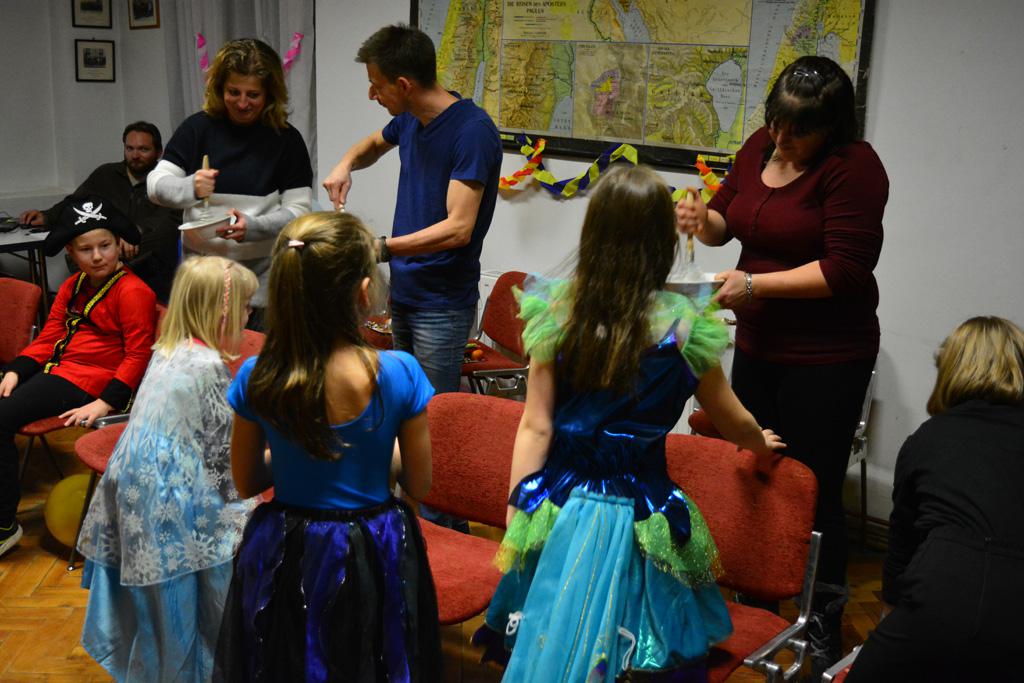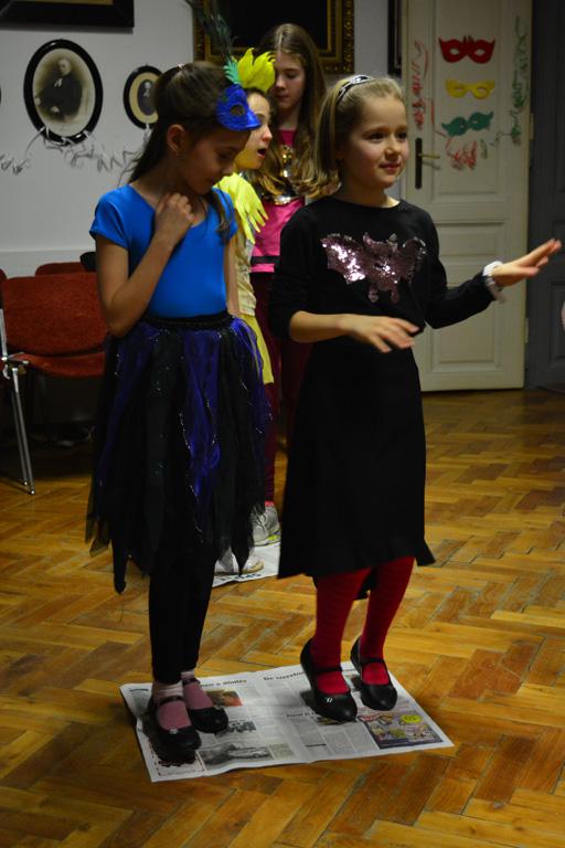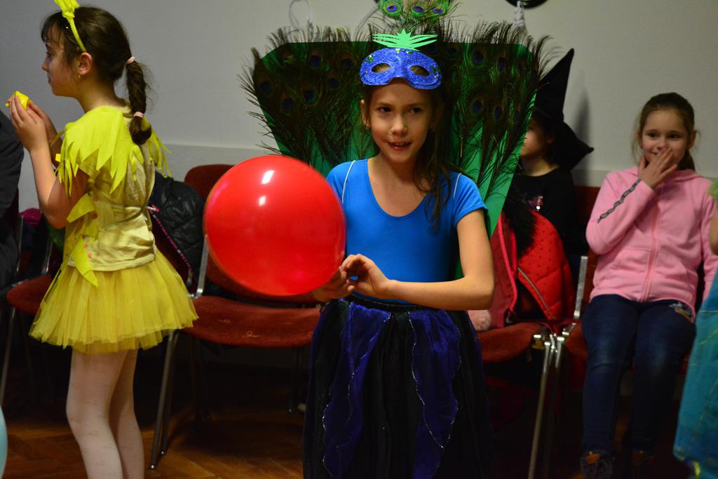Színes, szép, ötletes jelmezekben mutatkoztak be a gyermekek. A farsangi bemutatkozó táncot mókás játékok követték, melyekbe a gyermekek szülei és testvérei is bekapcsolódtak. Volt köztük lufifújó, székfoglaló, csokikarika evő verseny és vidám fogójátékok. Játék közben finom sütiket, üdítőket fogyasztottak a résztvevők.