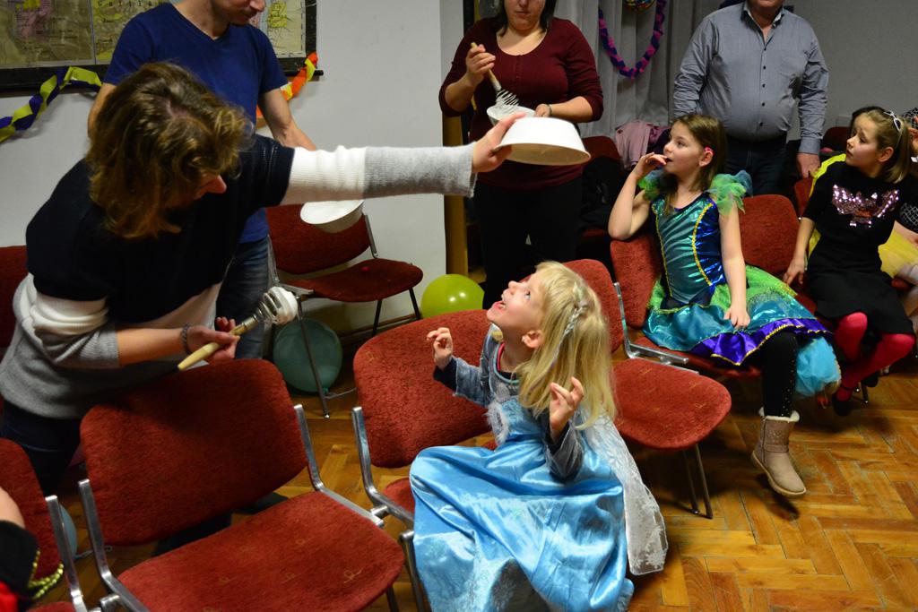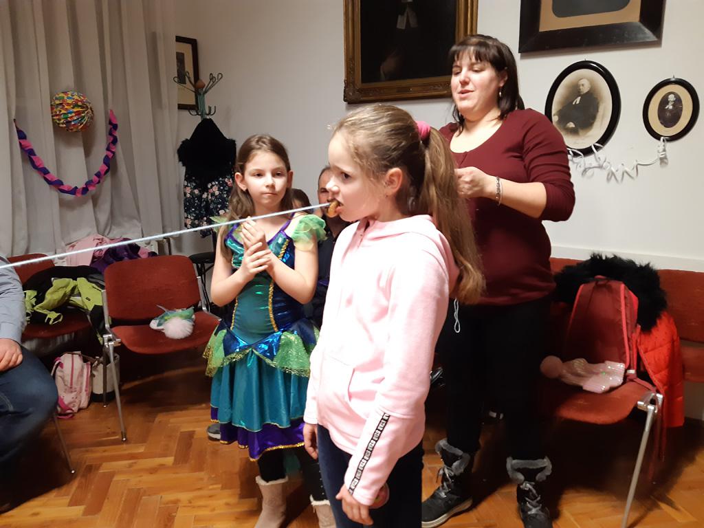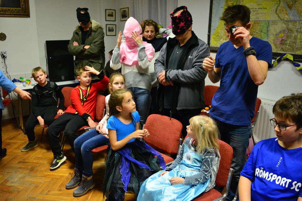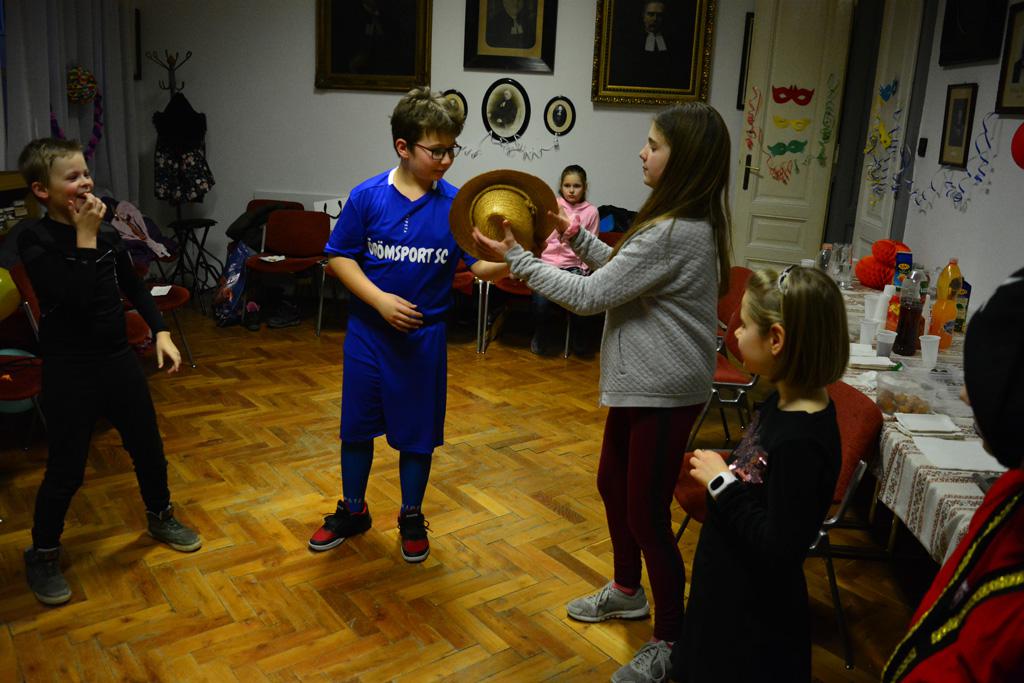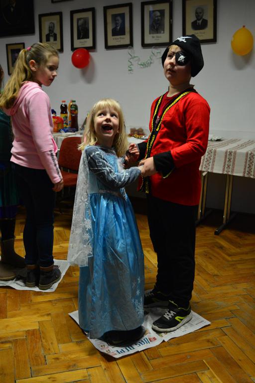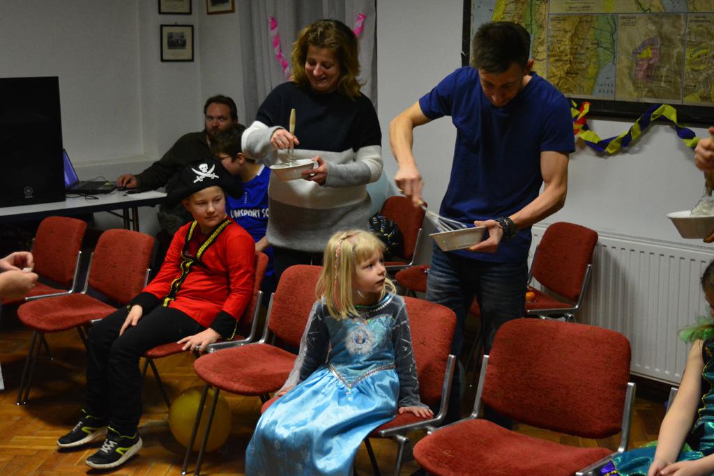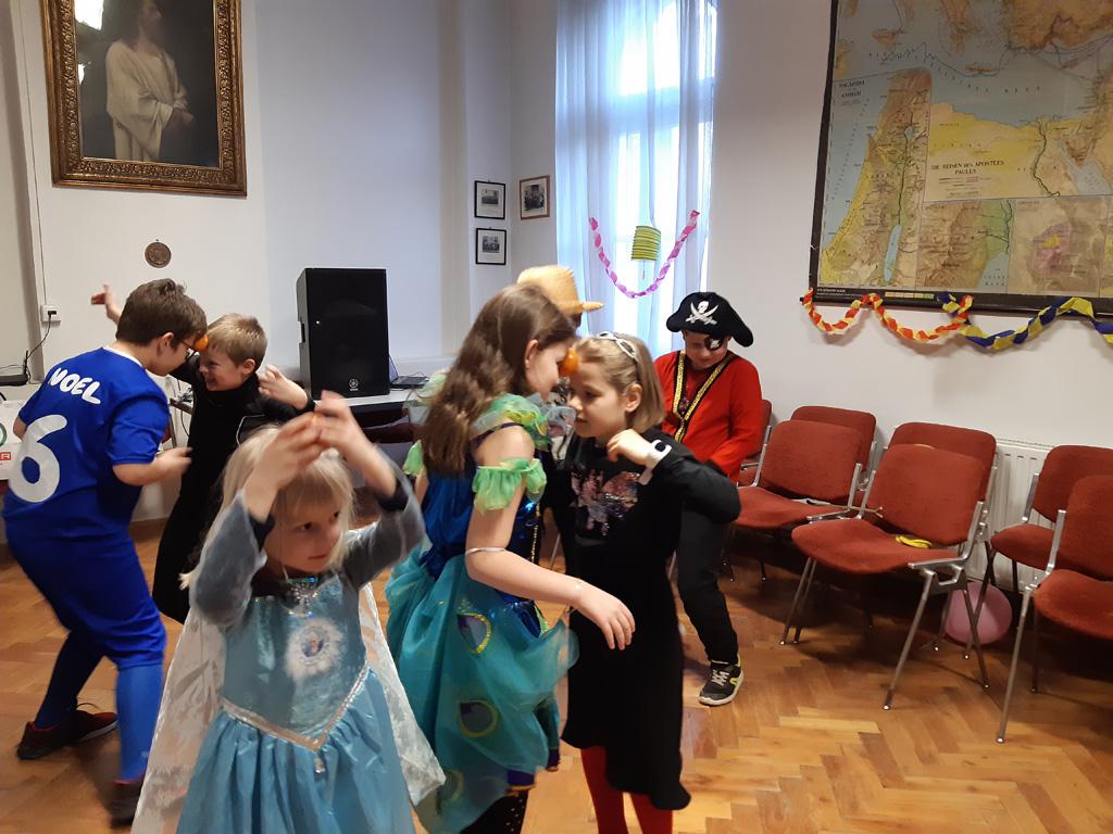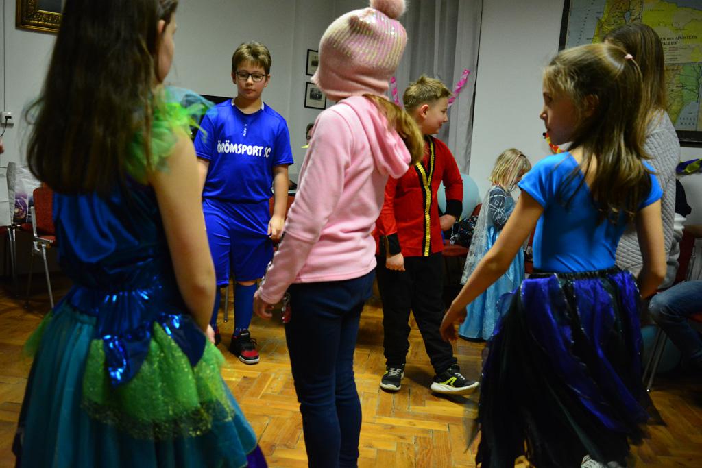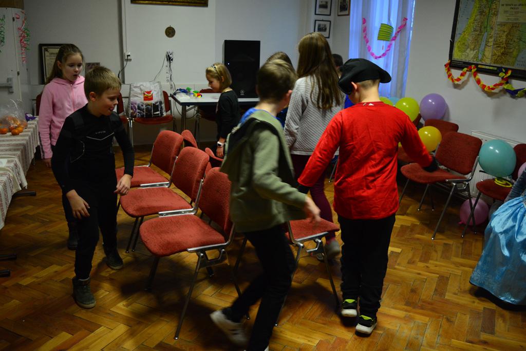 Színes, szép, ötletes jelmezekben mutatkoztak be a gyermekek. A farsangi bemutatkozó táncot mókás játékok követték, melyekbe a gyermekek szülei és testvérei is bekapcsolódtak. Volt köztük lufifújó, székfoglaló, csokikarika evő verseny és vidám fogójátékok. Játék közben finom sütiket, üdítőket fogyasztottak a résztvevők.