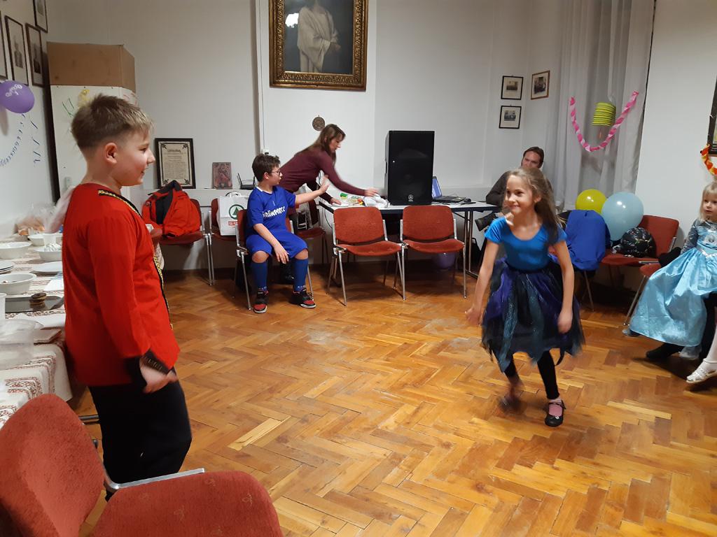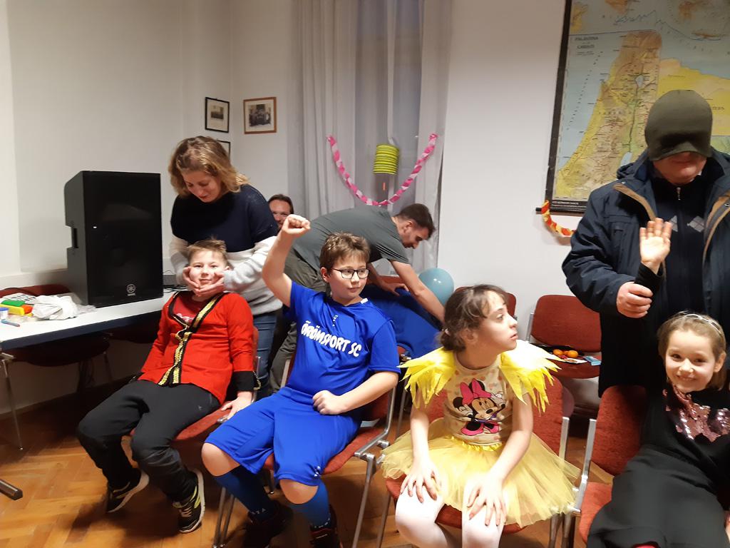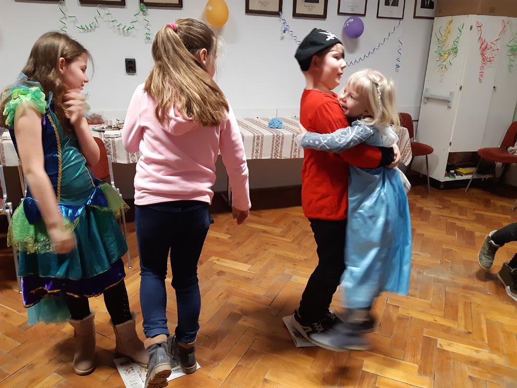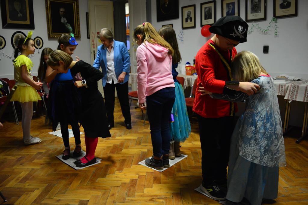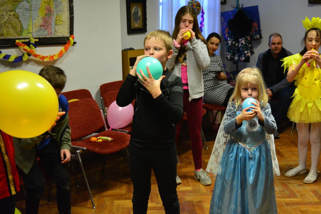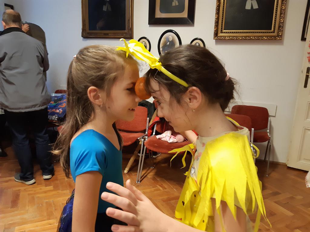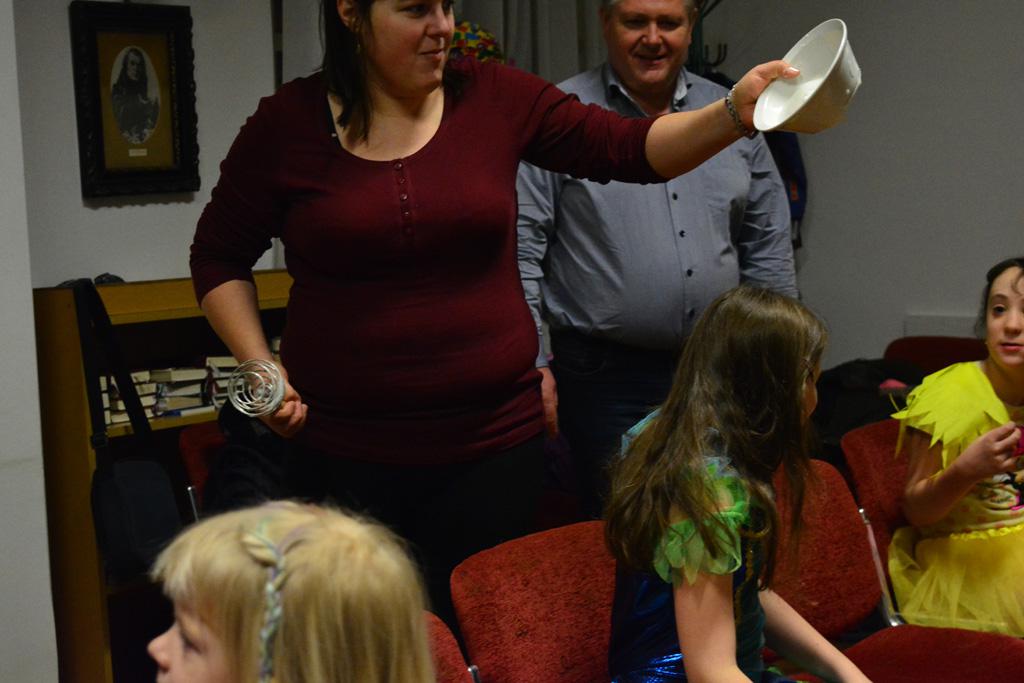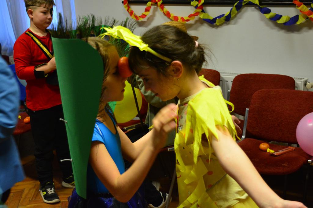 Színes, szép, ötletes jelmezekben mutatkoztak be a gyermekek. A farsangi bemutatkozó táncot mókás játékok követték, melyekbe a gyermekek szülei és testvérei is bekapcsolódtak. Volt köztük lufifújó, székfoglaló, csokikarika evő verseny és vidám fogójátékok. Játék közben finom sütiket, üdítőket fogyasztottak a résztvevők.