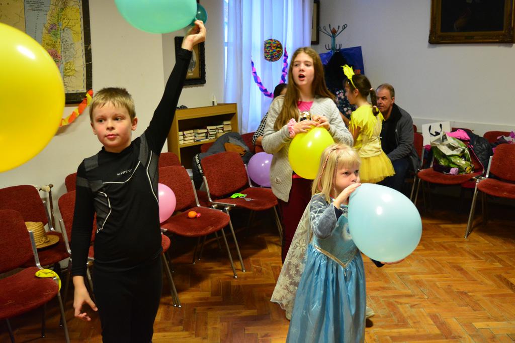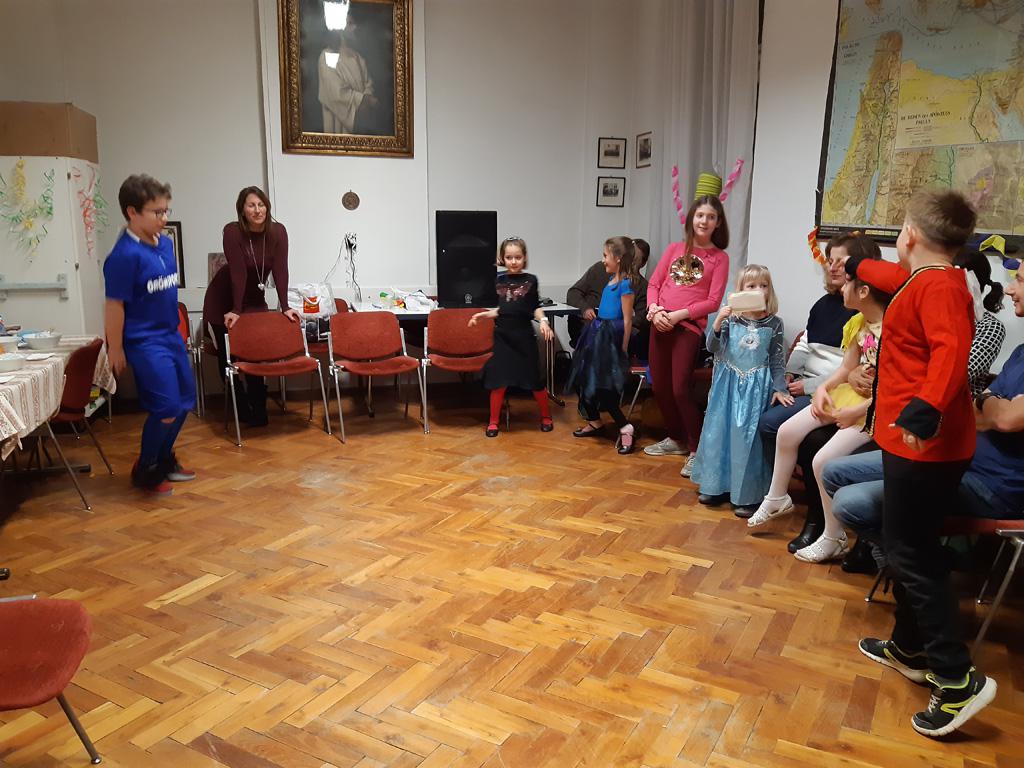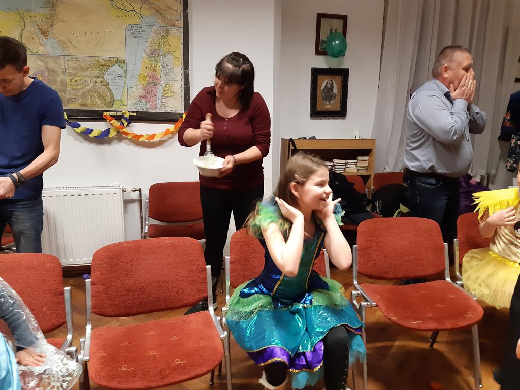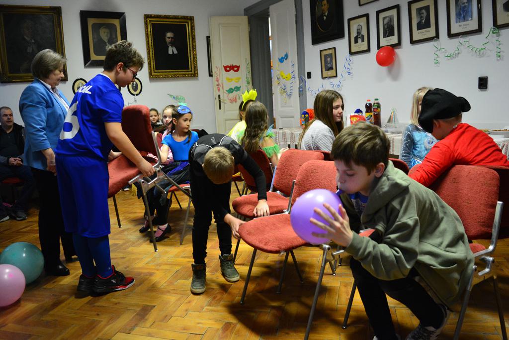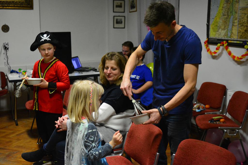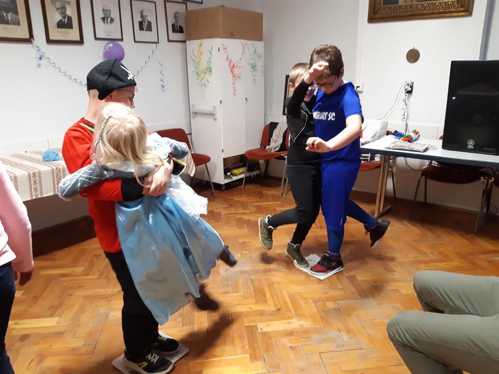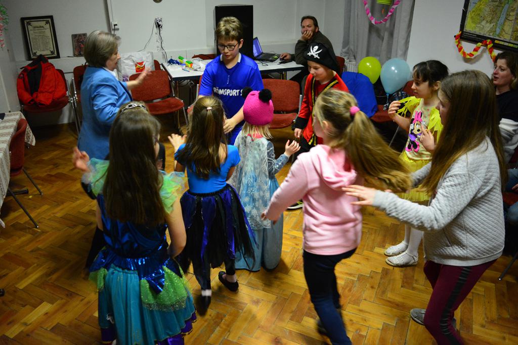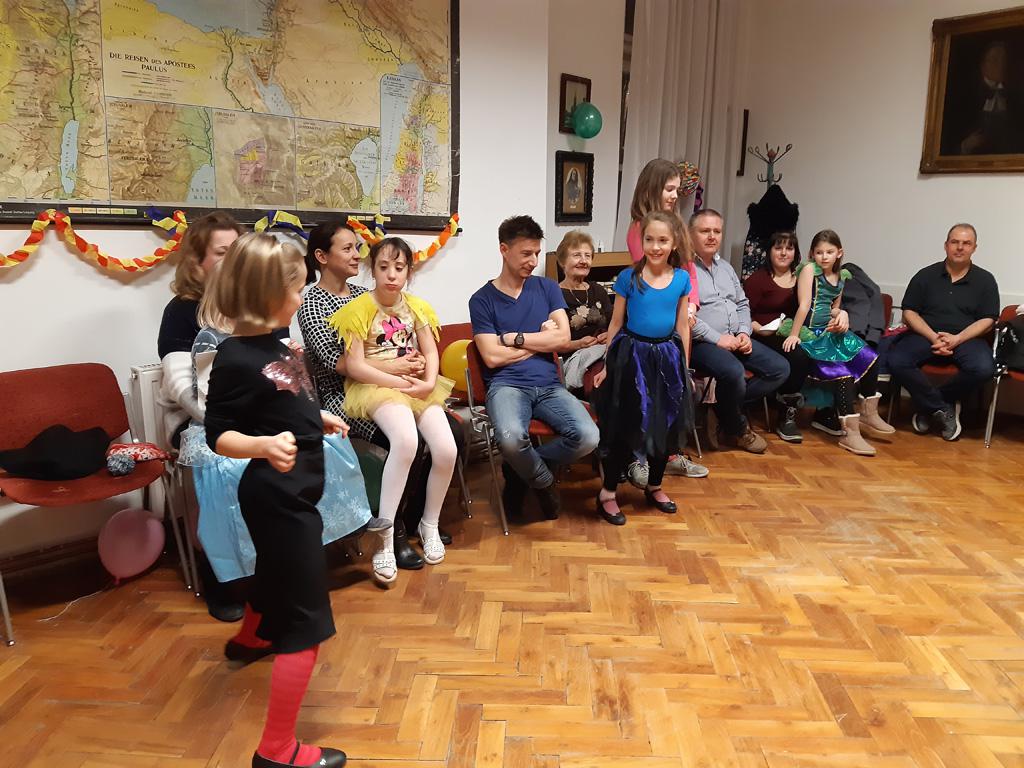 Színes, szép, ötletes jelmezekben mutatkoztak be a gyermekek. A farsangi bemutatkozó táncot mókás játékok követték, melyekbe a gyermekek szülei és testvérei is bekapcsolódtak. Volt köztük lufifújó, székfoglaló, csokikarika evő verseny és vidám fogójátékok. Játék közben finom sütiket, üdítőket fogyasztottak a résztvevők.