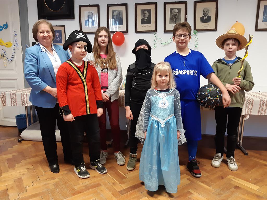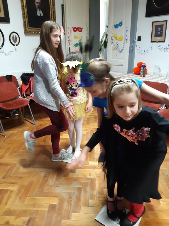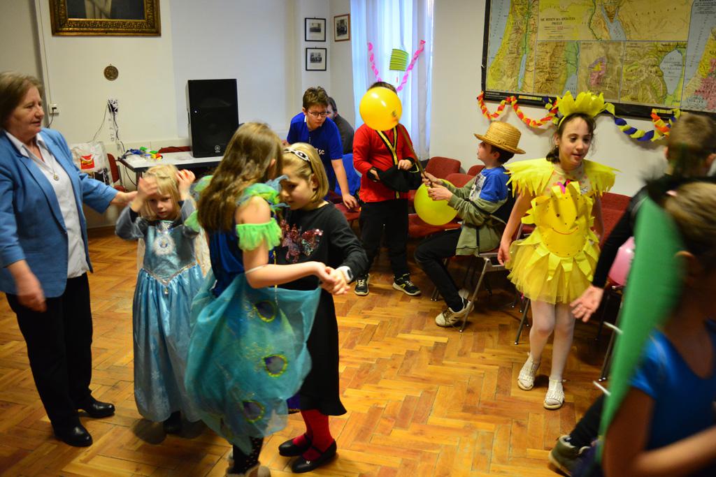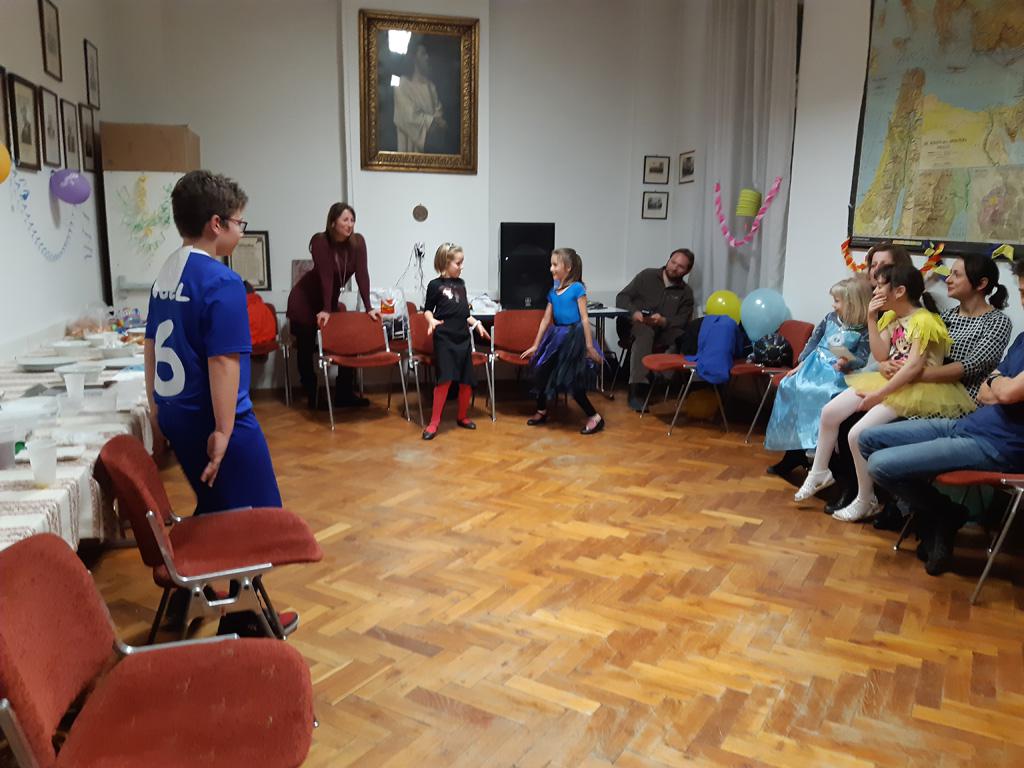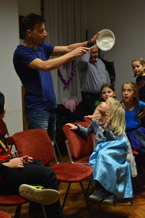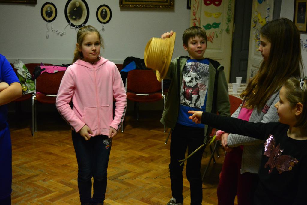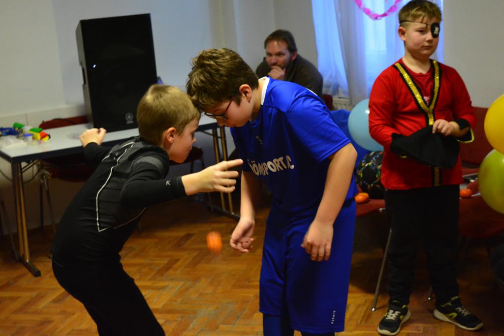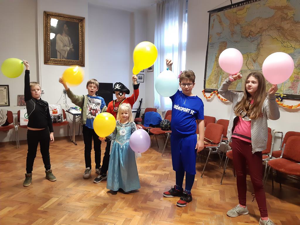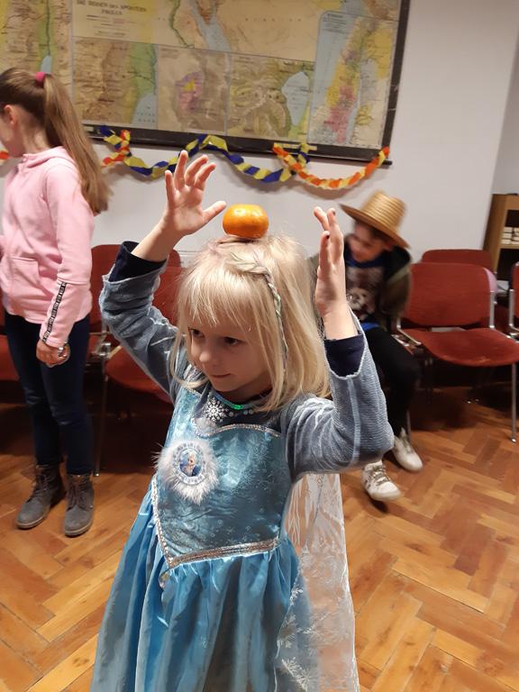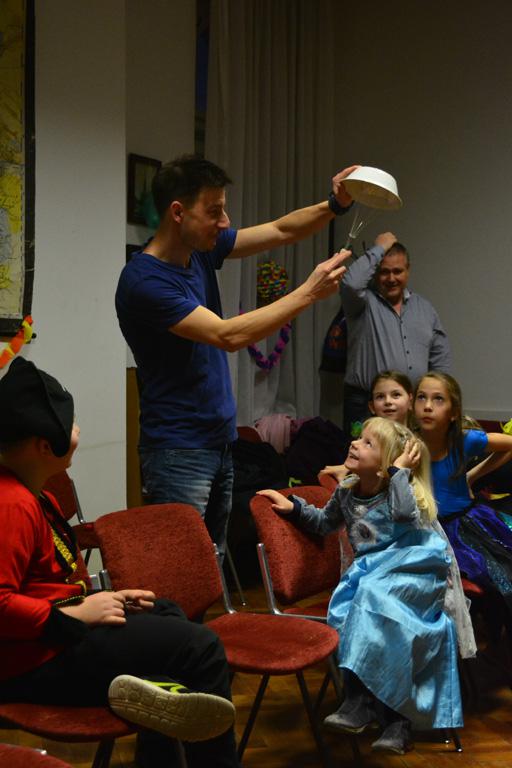 Színes, szép, ötletes jelmezekben mutatkoztak be a gyermekek. A farsangi bemutatkozó táncot mókás játékok követték, melyekbe a gyermekek szülei és testvérei is bekapcsolódtak. Volt köztük lufifújó, székfoglaló, csokikarika evő verseny és vidám fogójátékok. Játék közben finom sütiket, üdítőket fogyasztottak a résztvevők.