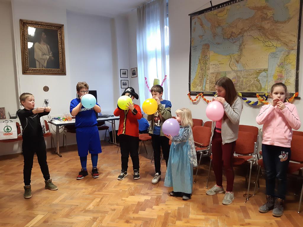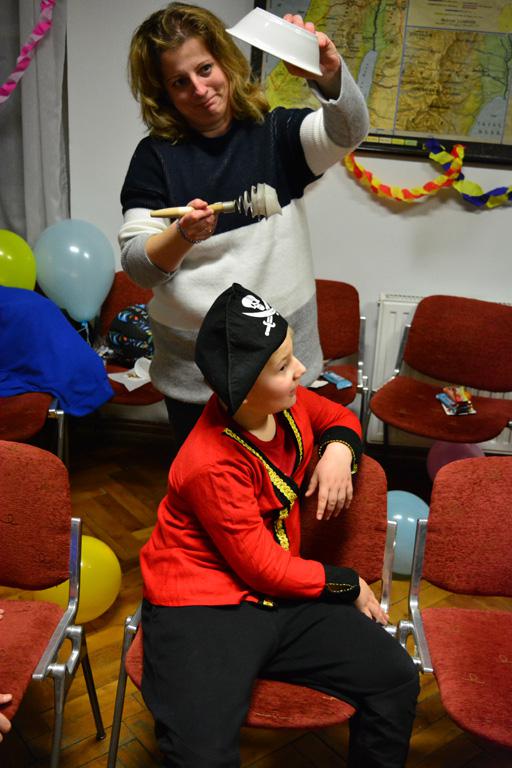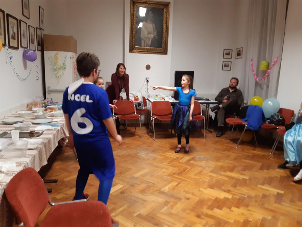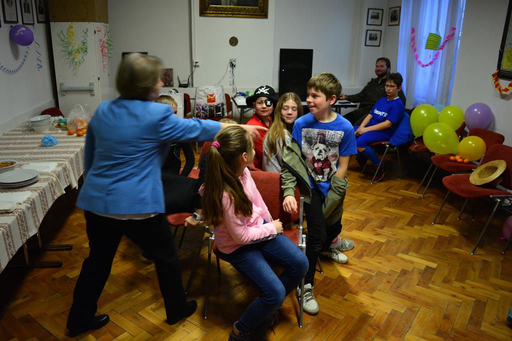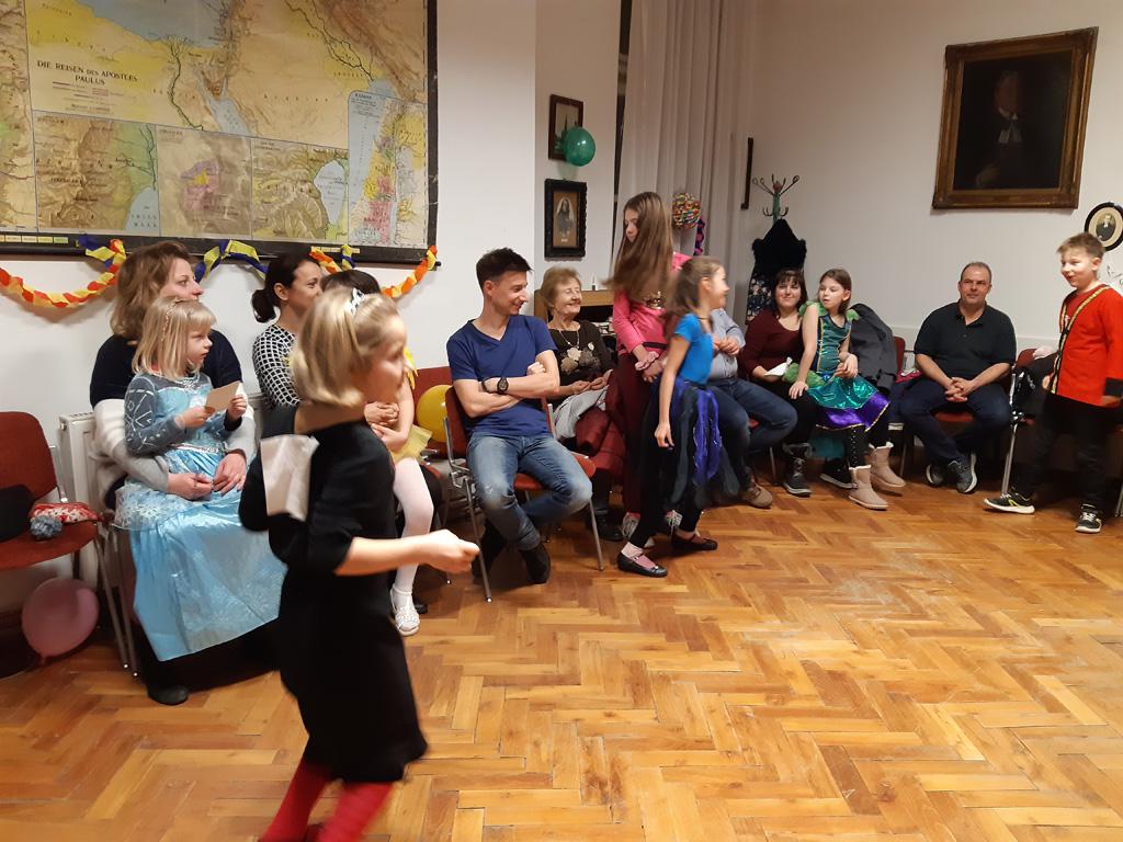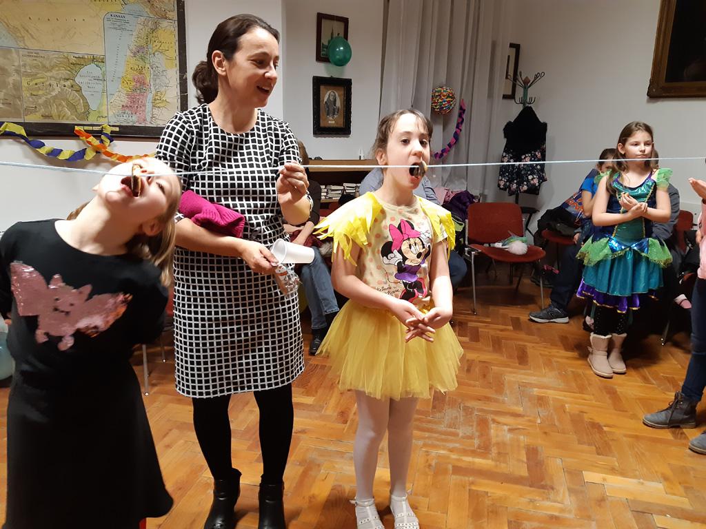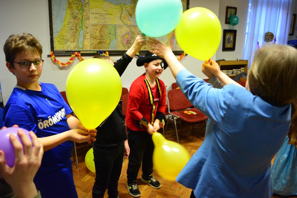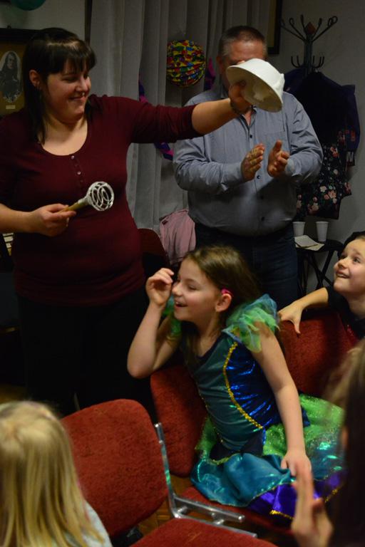 Színes, szép, ötletes jelmezekben mutatkoztak be a gyermekek. A farsangi bemutatkozó táncot mókás játékok követték, melyekbe a gyermekek szülei és testvérei is bekapcsolódtak. Volt köztük lufifújó, székfoglaló, csokikarika evő verseny és vidám fogójátékok. Játék közben finom sütiket, üdítőket fogyasztottak a résztvevők.