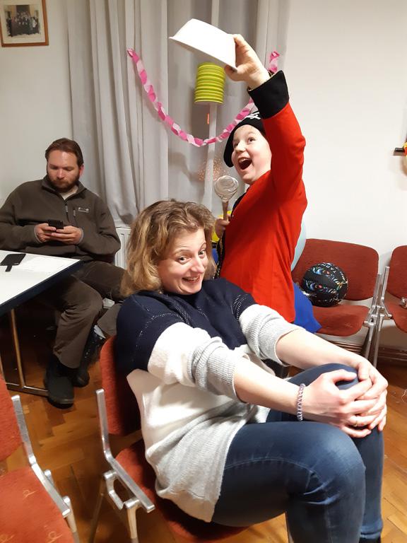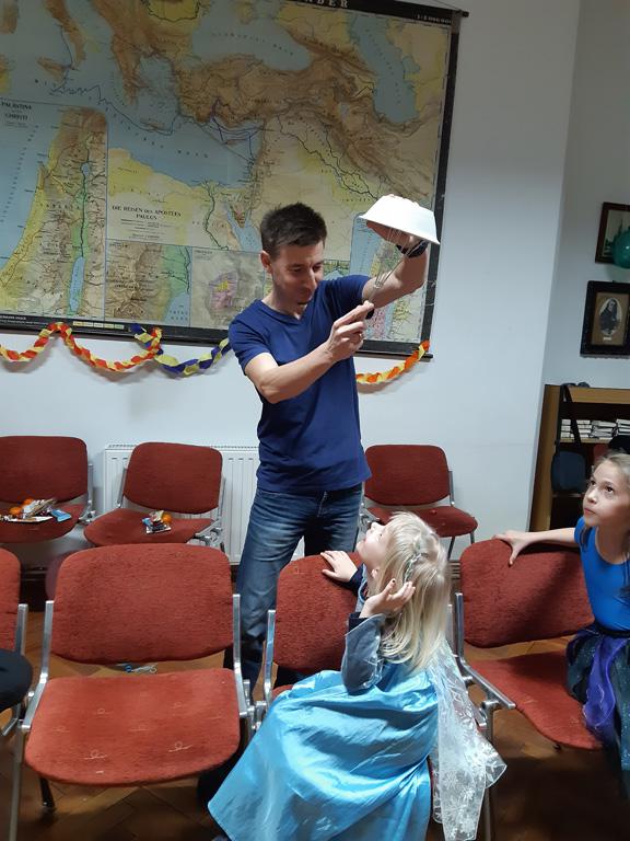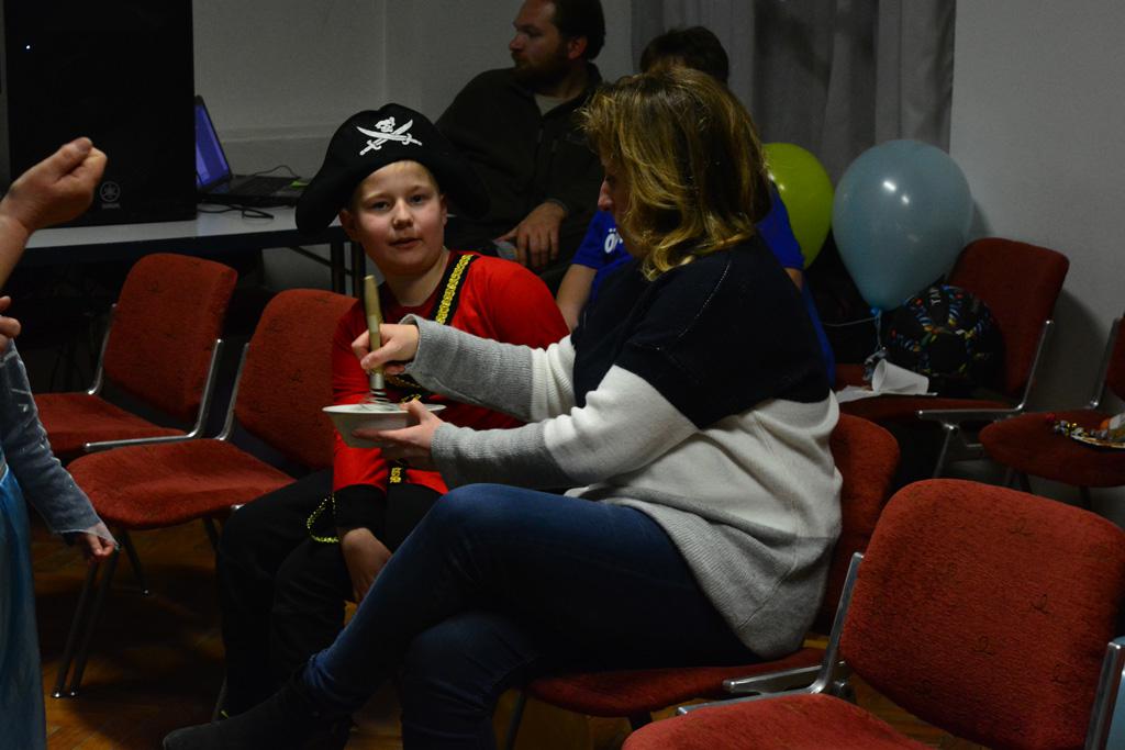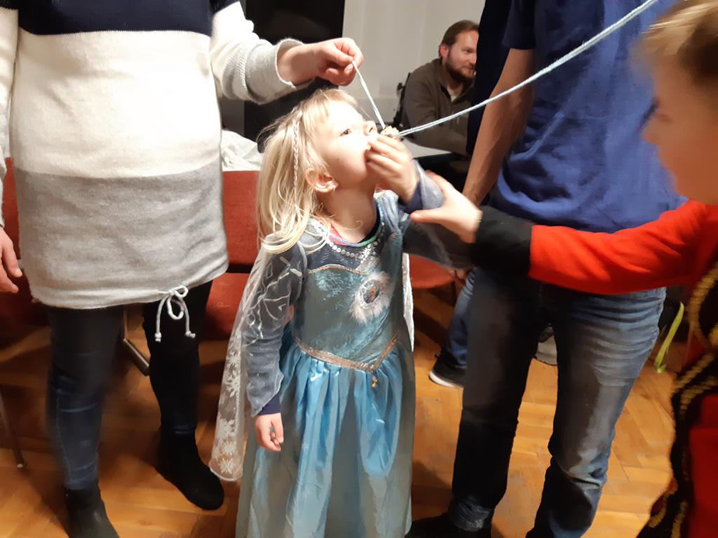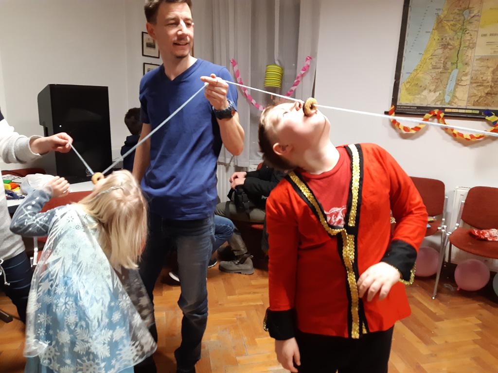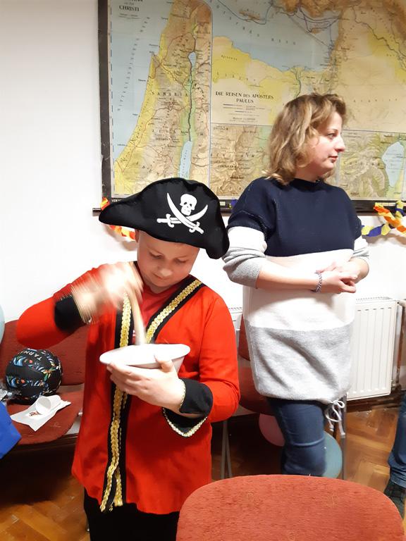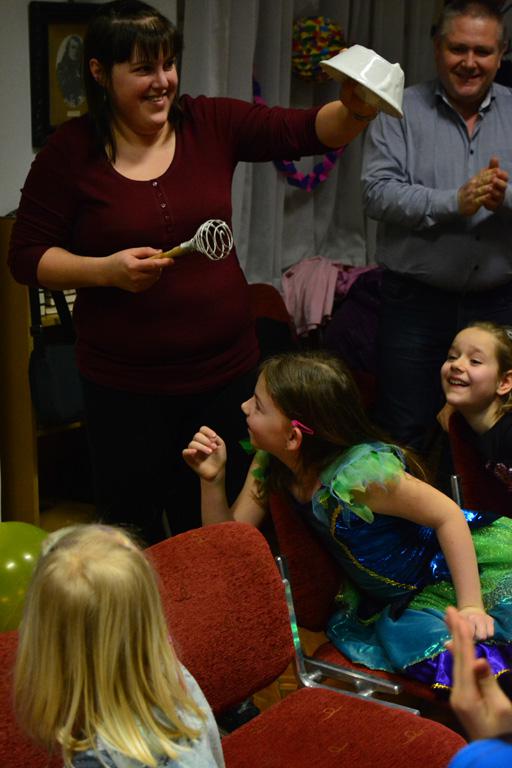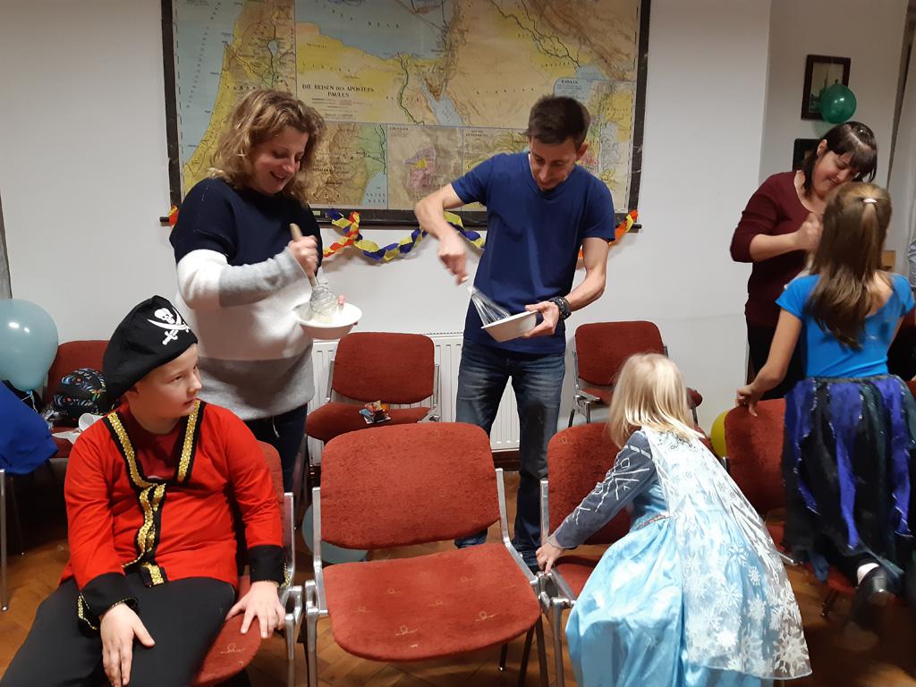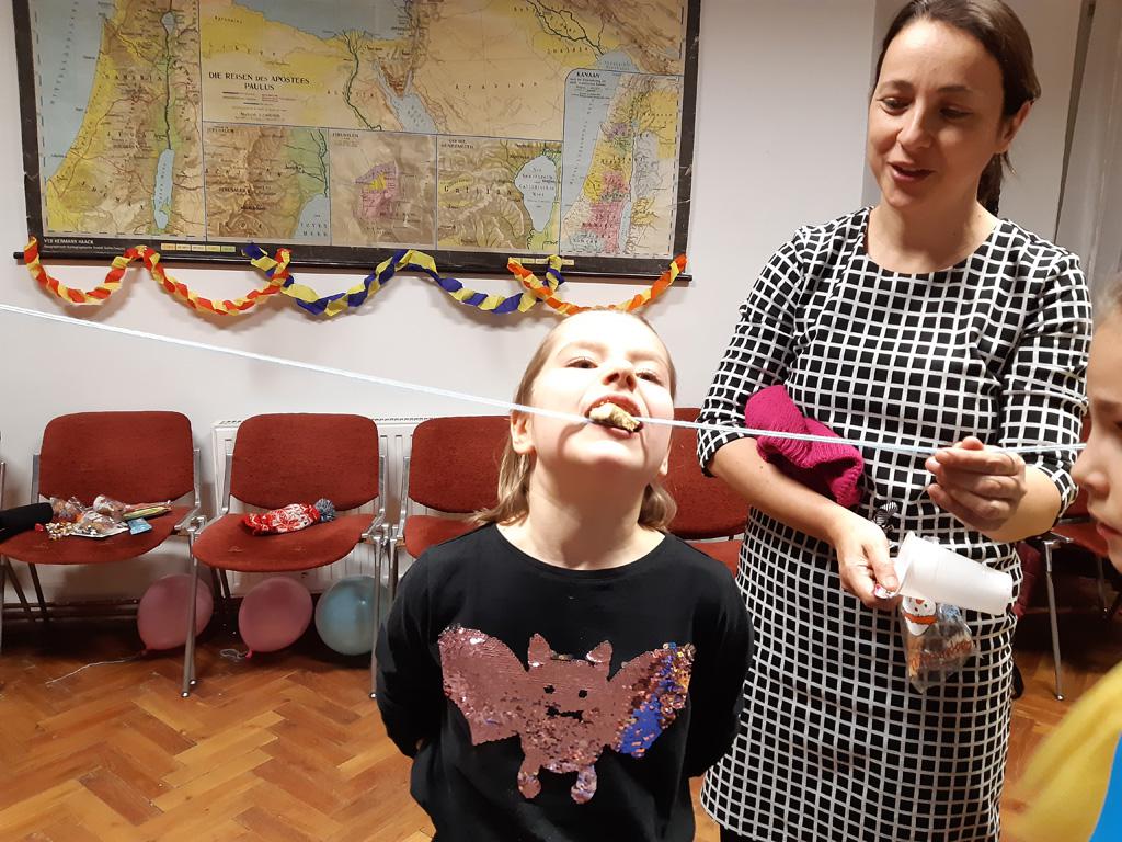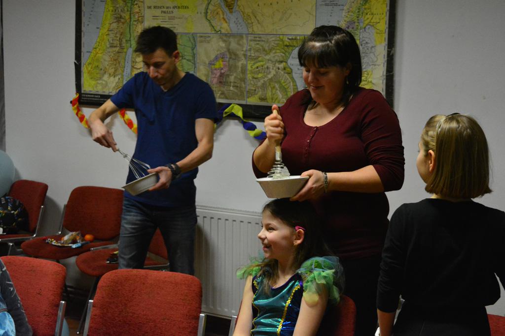 Színes, szép, ötletes jelmezekben mutatkoztak be a gyermekek. A farsangi bemutatkozó táncot mókás játékok követték, melyekbe a gyermekek szülei és testvérei is bekapcsolódtak. Volt köztük lufifújó, székfoglaló, csokikarika evő verseny és vidám fogójátékok. Játék közben finom sütiket, üdítőket fogyasztottak a résztvevők.