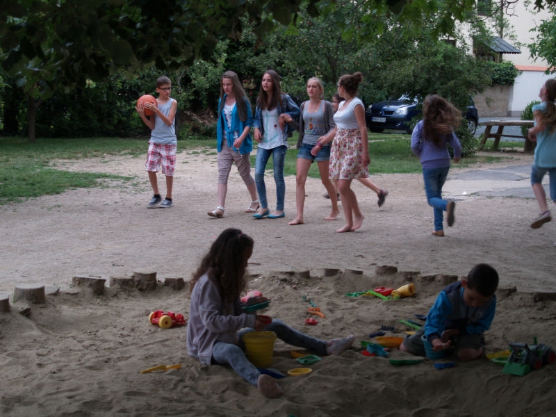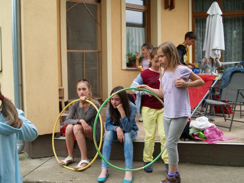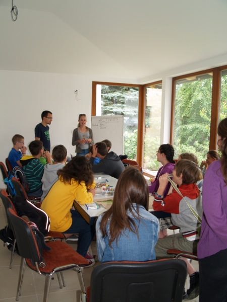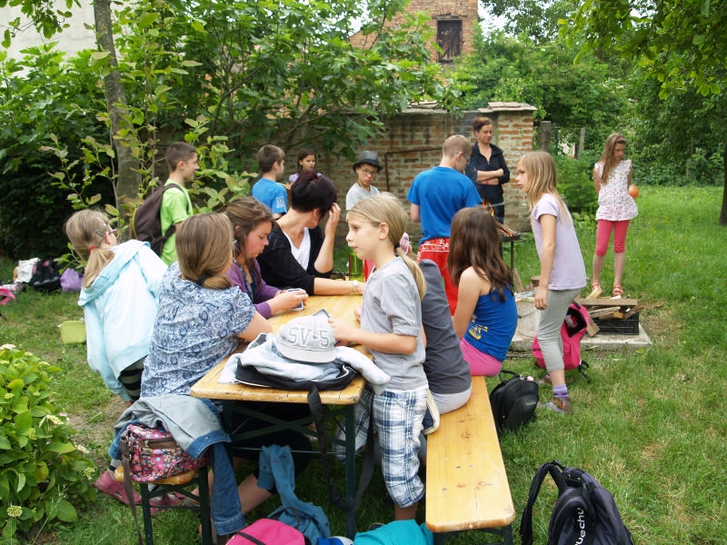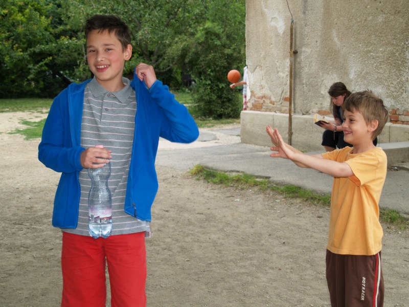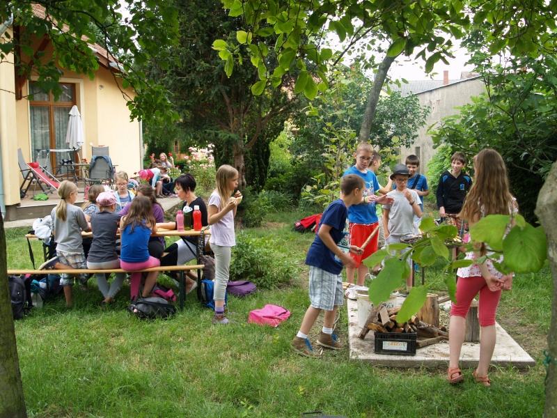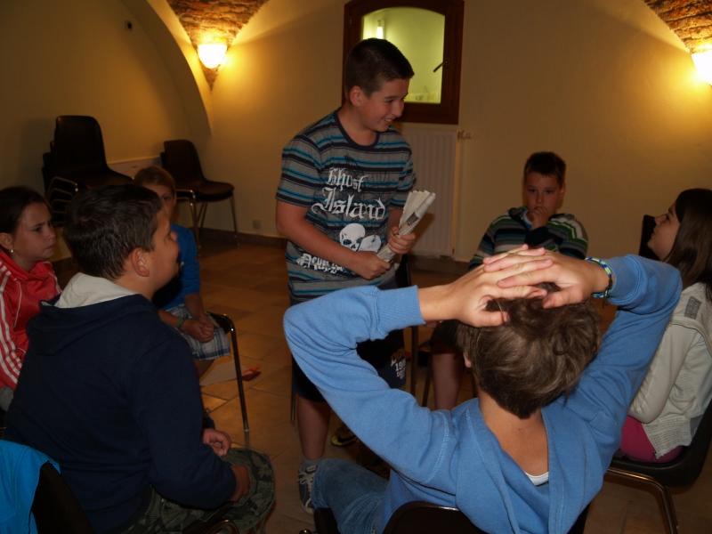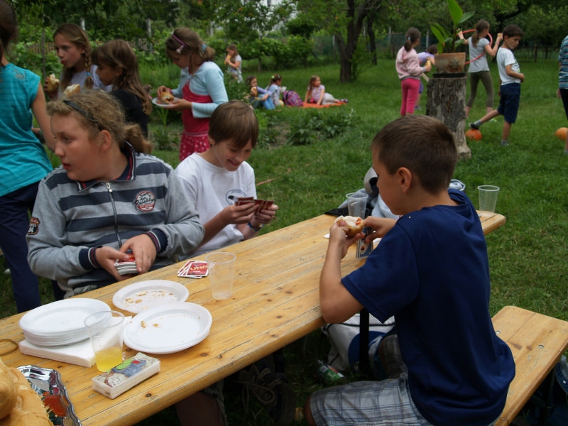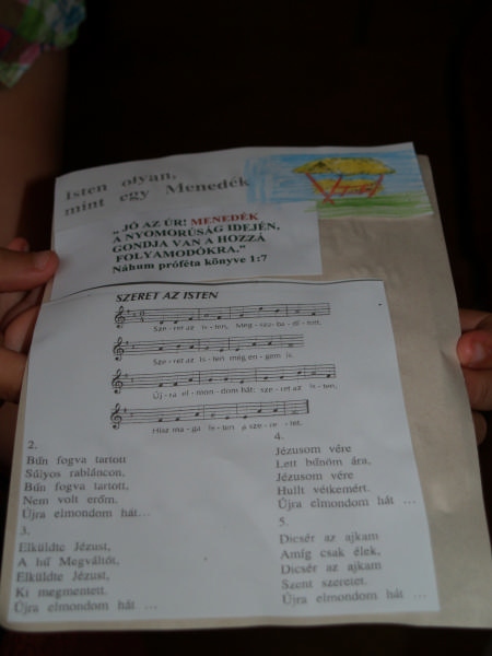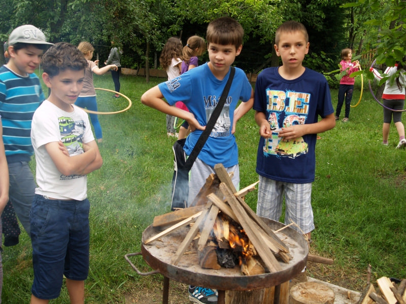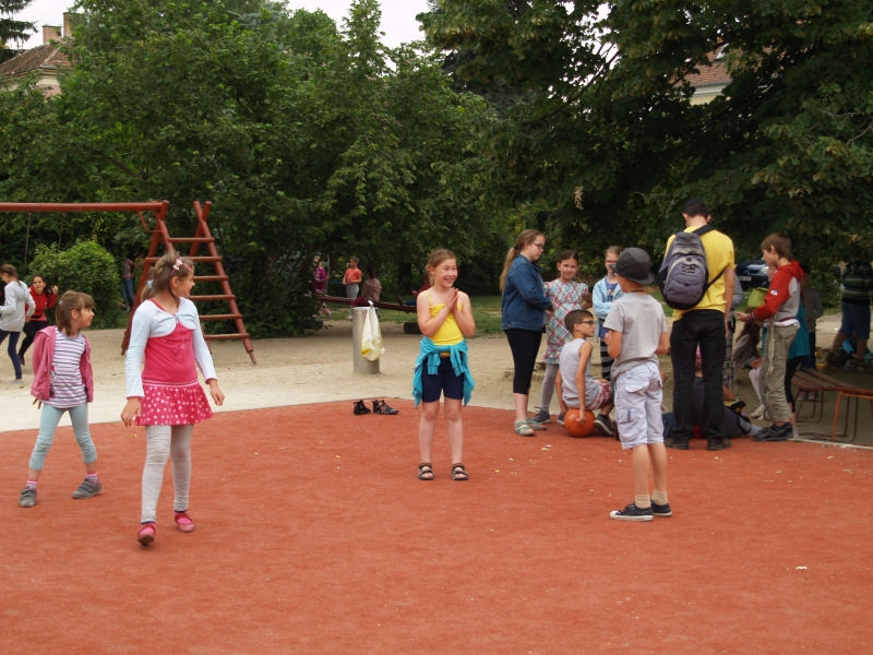 Sok beszélgetéssel, játékkal, tánccal és énekléssel telt a hittan tábor második napjának délelőttje. Ebéd után egy kis sportolás következett, majd a csoportok együtt mentek át Ági néniékhez, ahol megnézhettük, hogyan gondozzák a kertet, játszottunk, tűzet raktunk és sütögettünk is. Ez idő alatt a konfirmandusok az őszi konfirmációi vizsgára készültek.