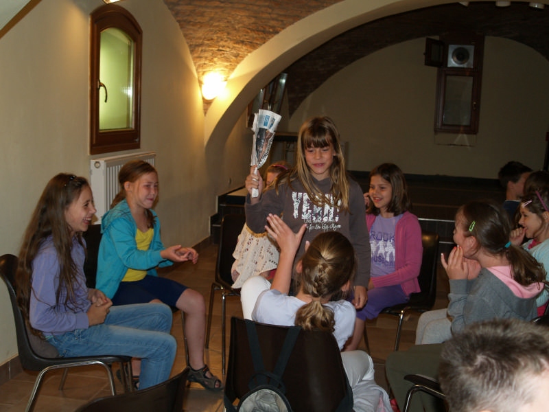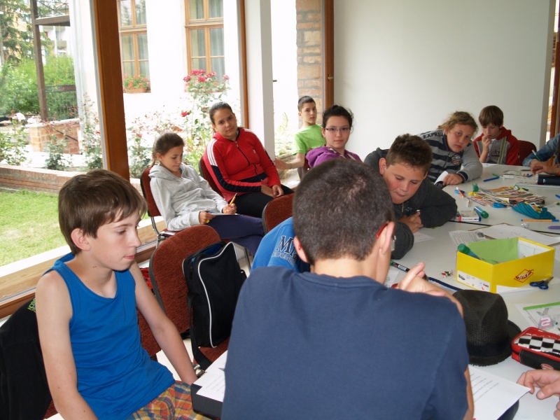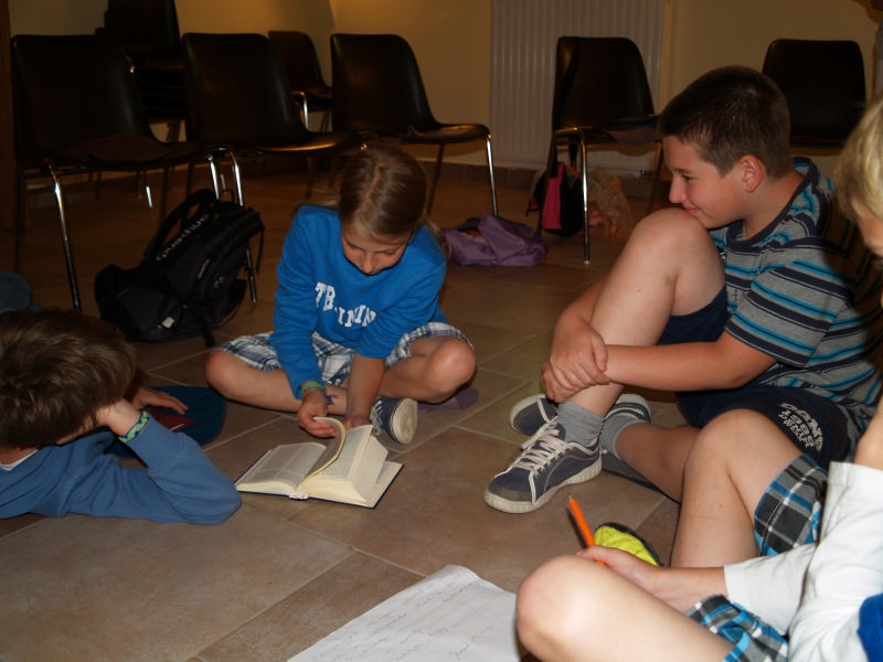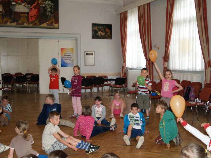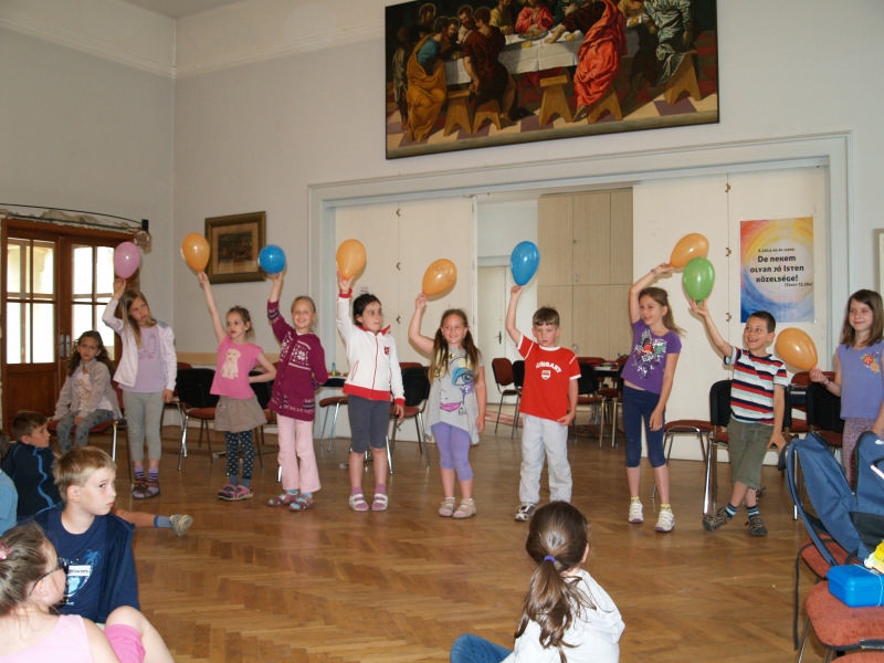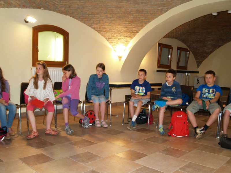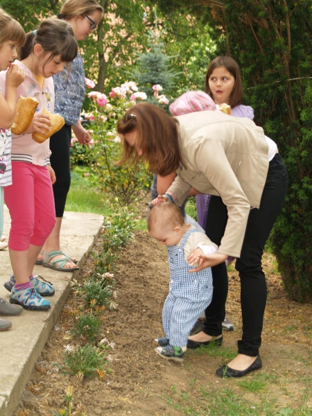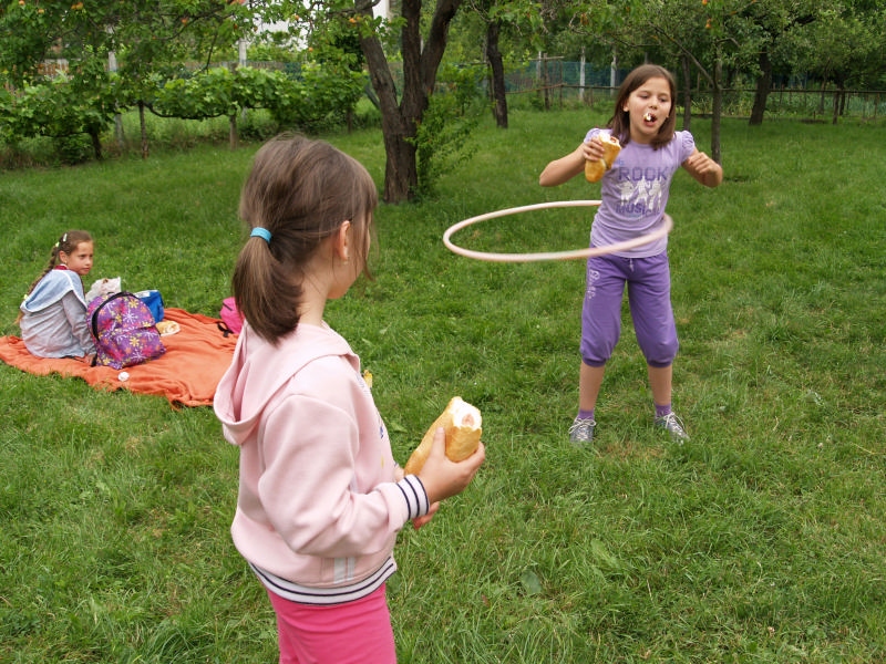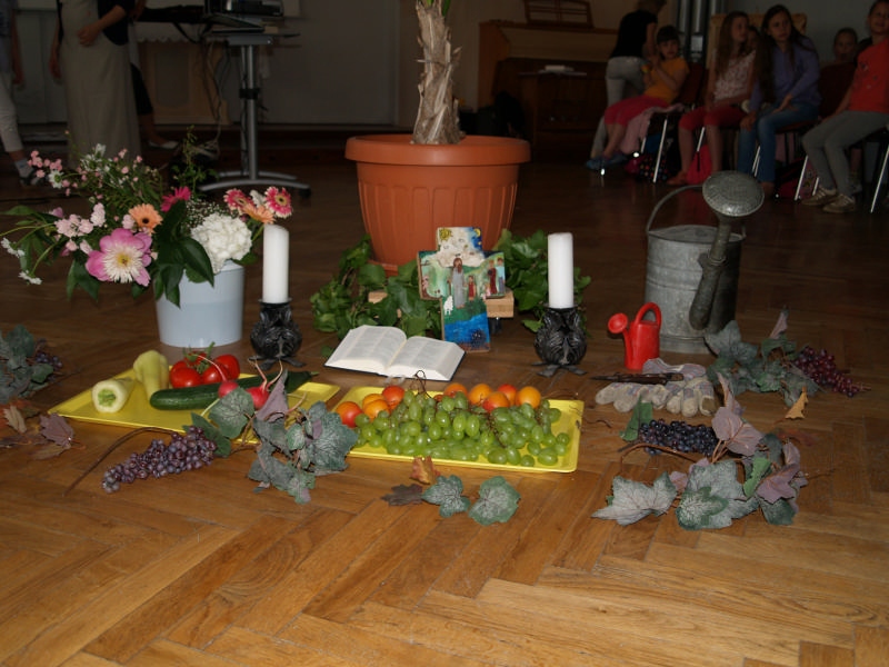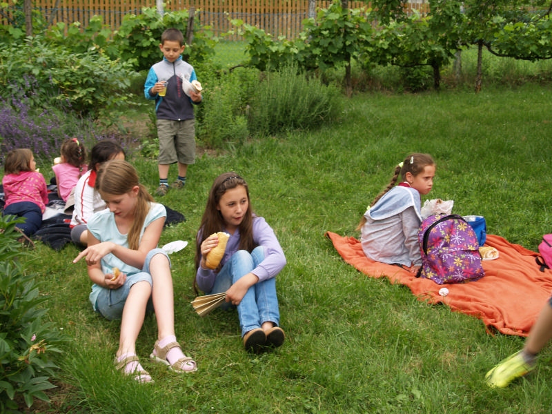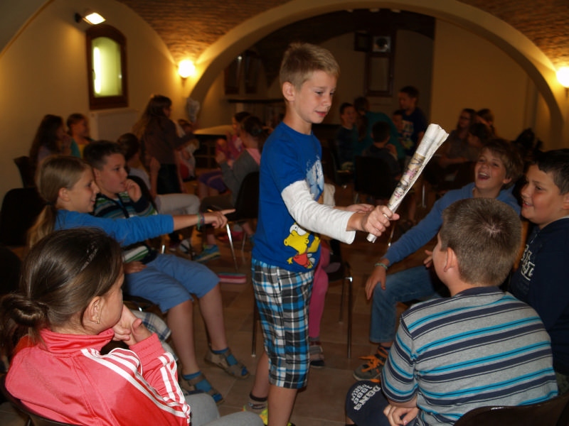 Sok beszélgetéssel, játékkal, tánccal és énekléssel telt a hittan tábor második napjának délelőttje. Ebéd után egy kis sportolás következett, majd a csoportok együtt mentek át Ági néniékhez, ahol megnézhettük, hogyan gondozzák a kertet, játszottunk, tűzet raktunk és sütögettünk is. Ez idő alatt a konfirmandusok az őszi konfirmációi vizsgára készültek.