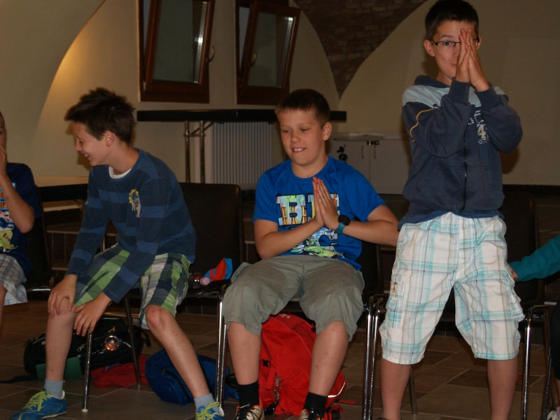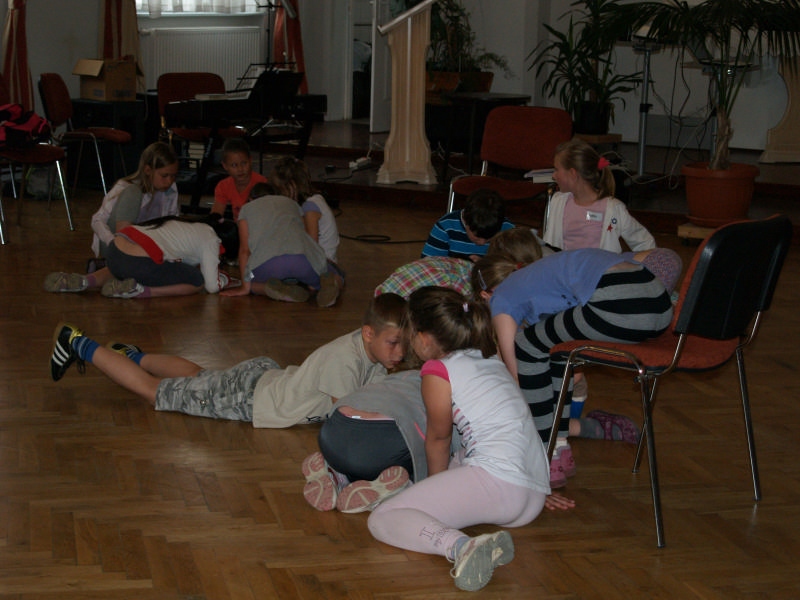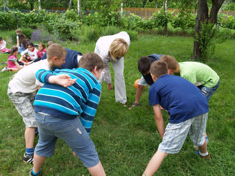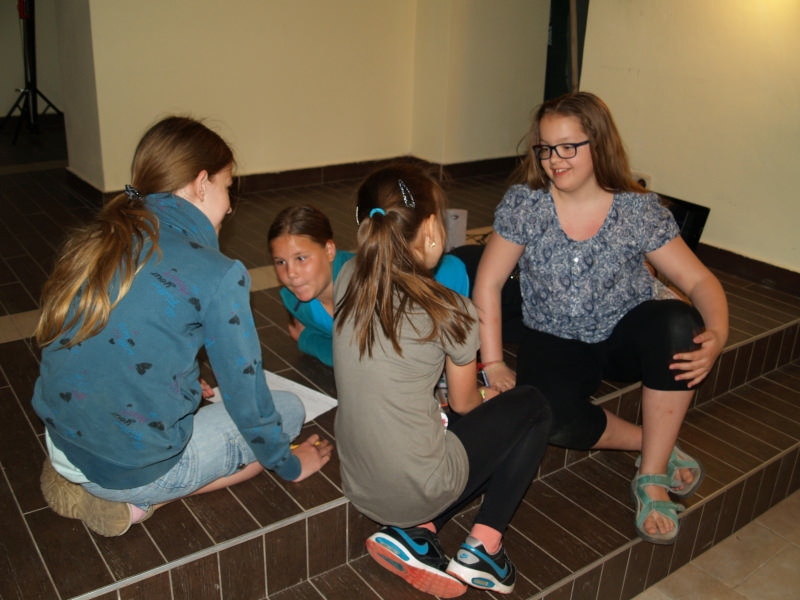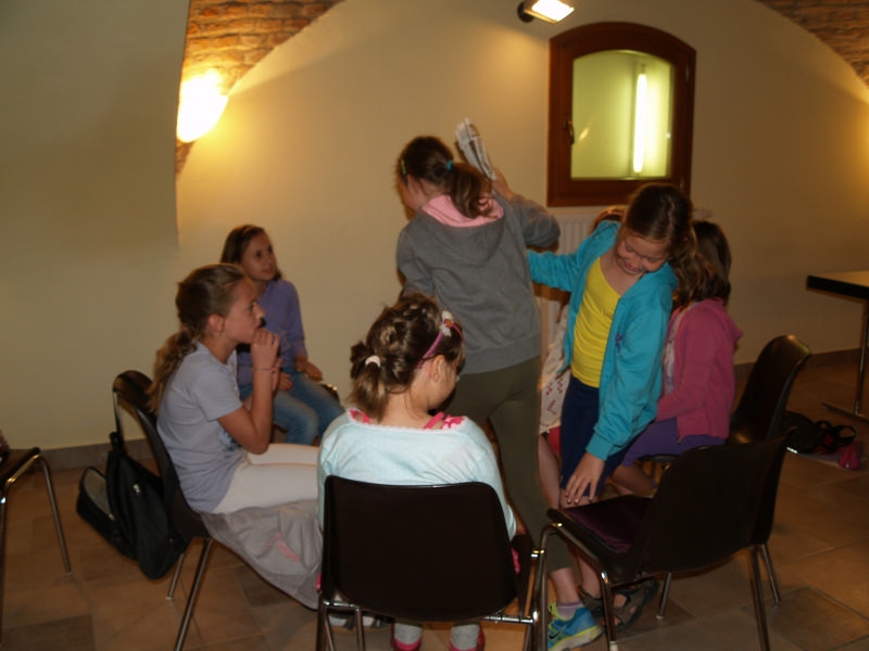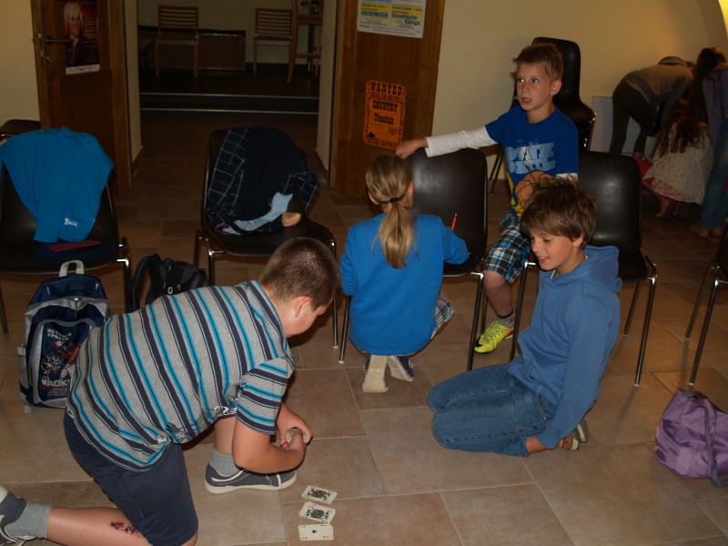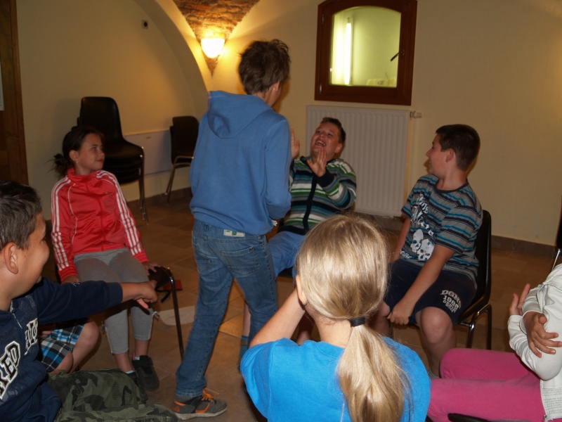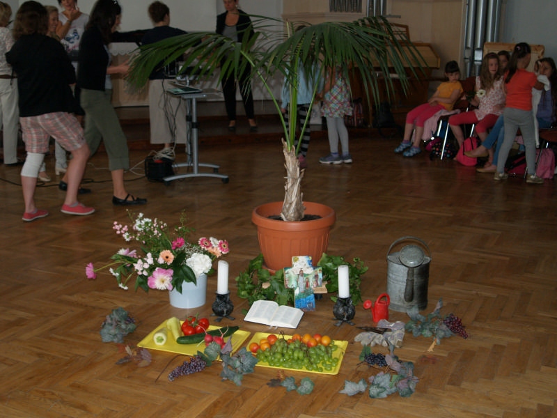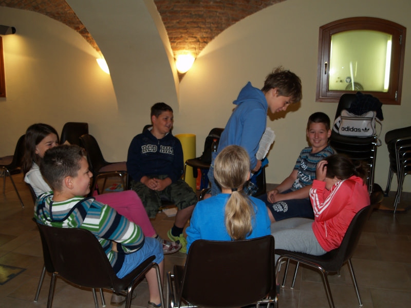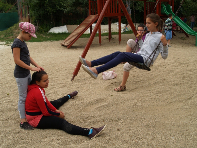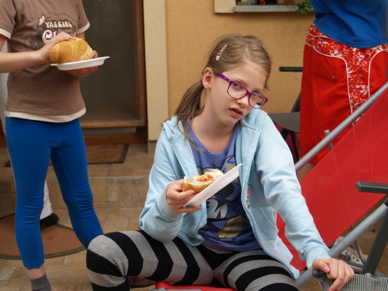 Sok beszélgetéssel, játékkal, tánccal és énekléssel telt a hittan tábor második napjának délelőttje. Ebéd után egy kis sportolás következett, majd a csoportok együtt mentek át Ági néniékhez, ahol megnézhettük, hogyan gondozzák a kertet, játszottunk, tűzet raktunk és sütögettünk is. Ez idő alatt a konfirmandusok az őszi konfirmációi vizsgára készültek.
