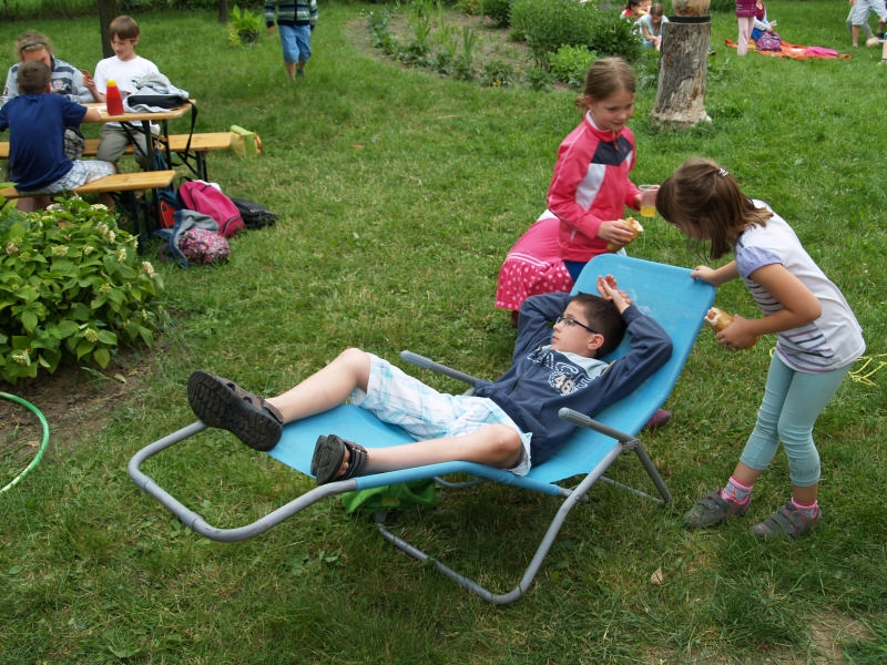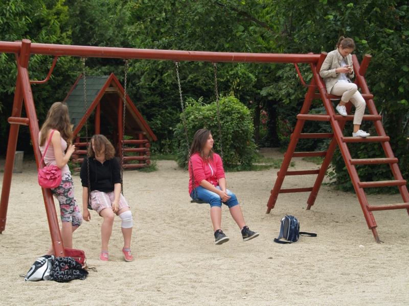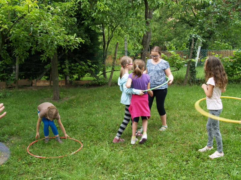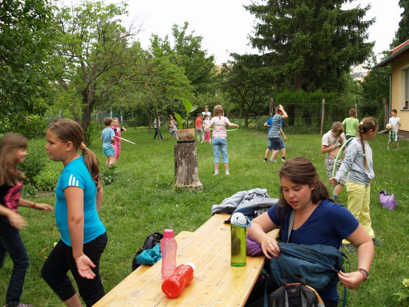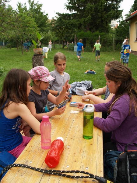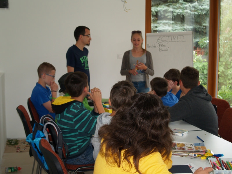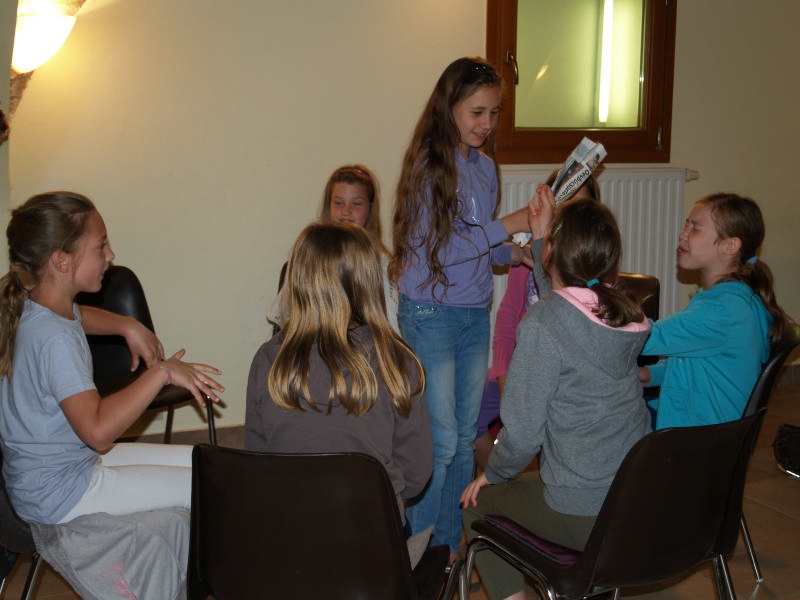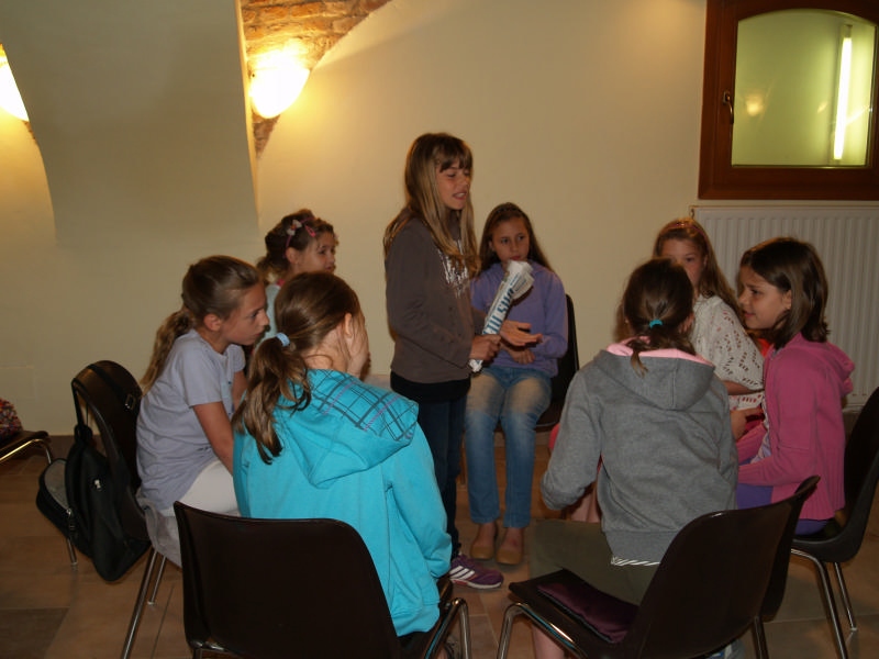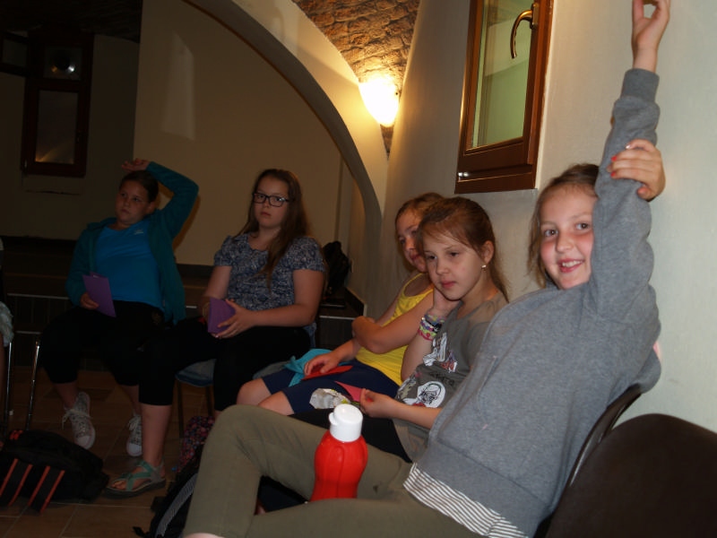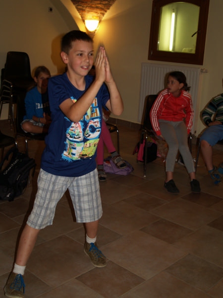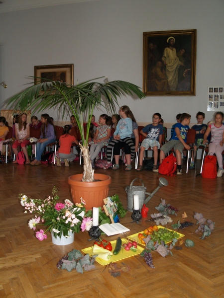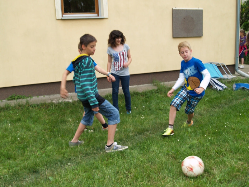 Sok beszélgetéssel, játékkal, tánccal és énekléssel telt a hittan tábor második napjának délelőttje. Ebéd után egy kis sportolás következett, majd a csoportok együtt mentek át Ági néniékhez, ahol megnézhettük, hogyan gondozzák a kertet, játszottunk, tűzet raktunk és sütögettünk is. Ez idő alatt a konfirmandusok az őszi konfirmációi vizsgára készültek.