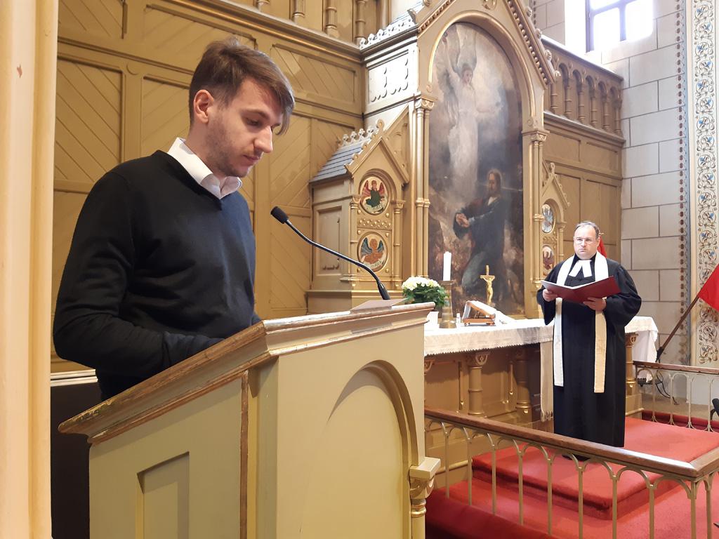 Április 19-én, Húsvét utáni első vasárnapon Gregersen-Labossa György parókus lelkész hirdette Isten igéjét a szombathelyi evangélikus templomban.