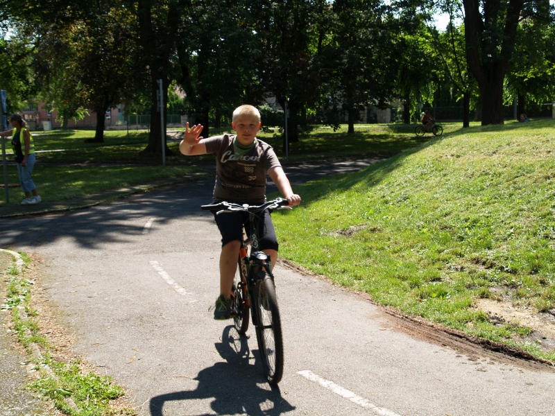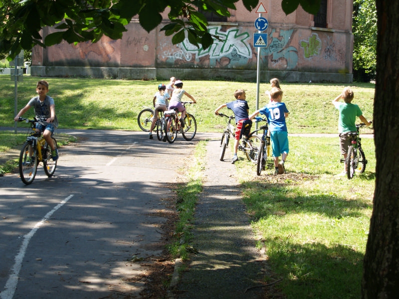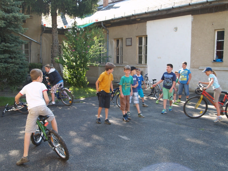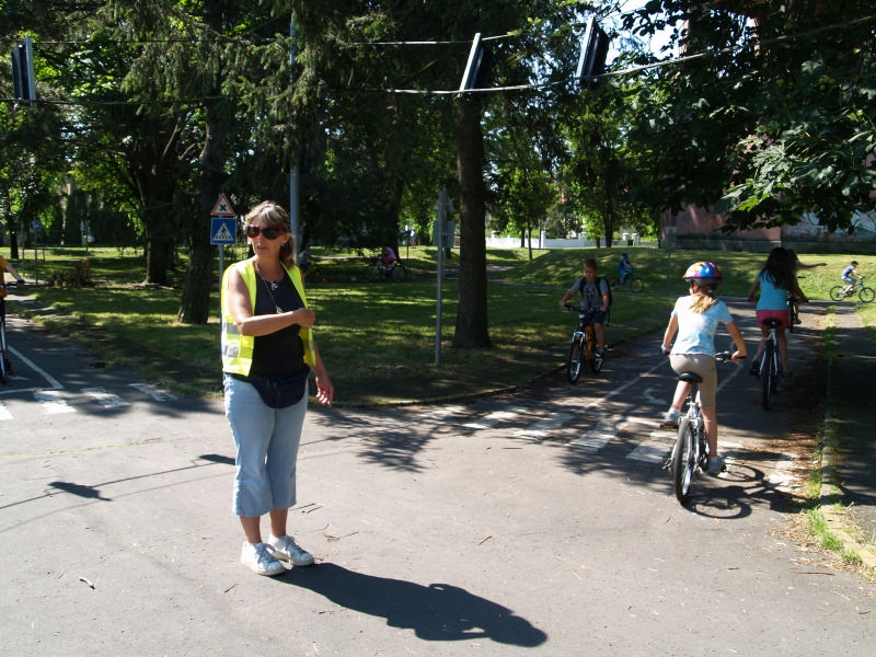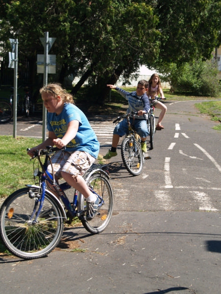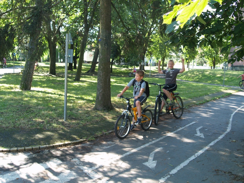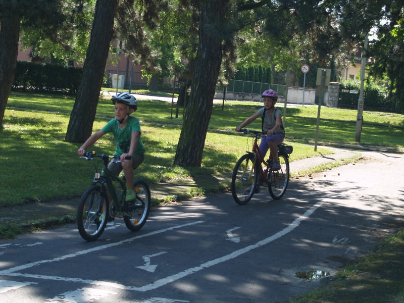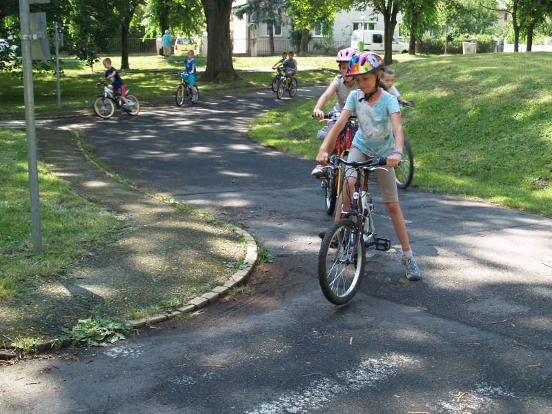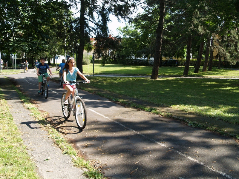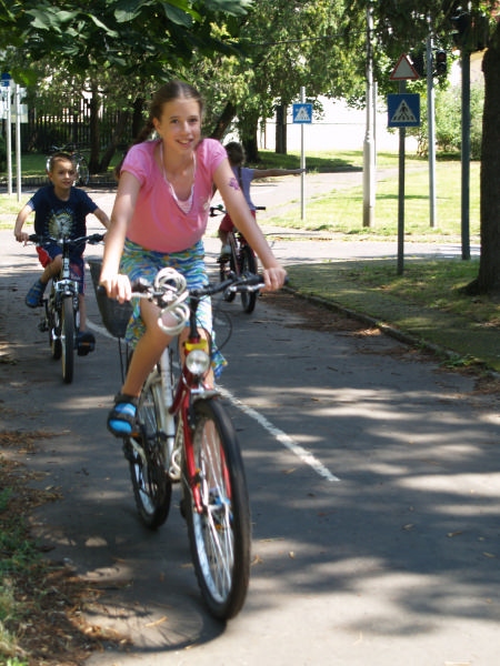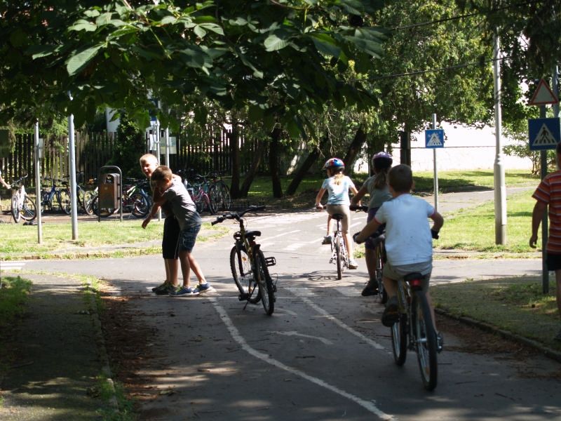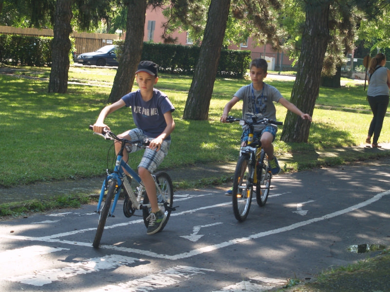 Csütörtökön miután átismételtük a Kresz szabályait ismét nyeregbe pattantunk és a Kresz Park felé vettük az irányt, ahol elmélyítettük a tanultakat. Biciklisként, gyalogosként, de még rendőrként is helytálltunk. Ebéd után pedig a Kalandvárosban játszottunk.