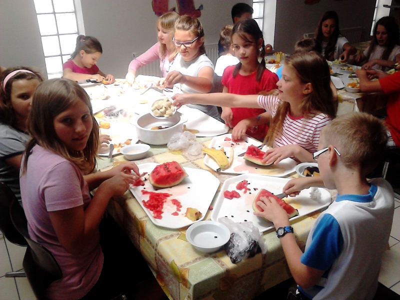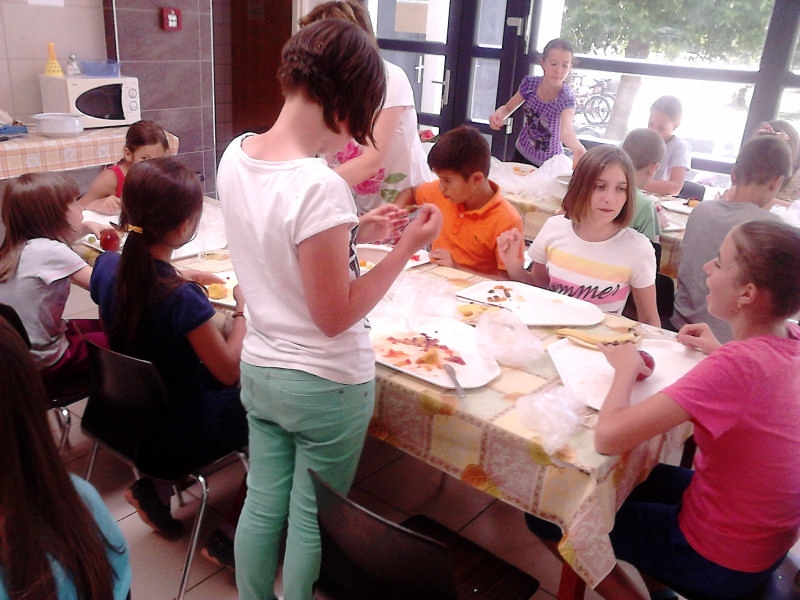 A játékos nyelvi foglalkozások mellett a gyerekek minden nap kézmüveskedtek, kicsit sportoltak.  Sportban a számháború volt a gyerekek kedvence, a projekt munkában pedig a gyümölcssaláta készítése. Kirándulni is voltunk Szentgotthárdra, ahol egy rövid városnézés után a fürdőbe mentünk. Természetesen a fürdés és a csúszdázás nagy élmény volt minden táborban résztvevőnek. Az utolsó napot a természetben töltött pár órával, majd egy játékos vetélkedővel zártuk.
